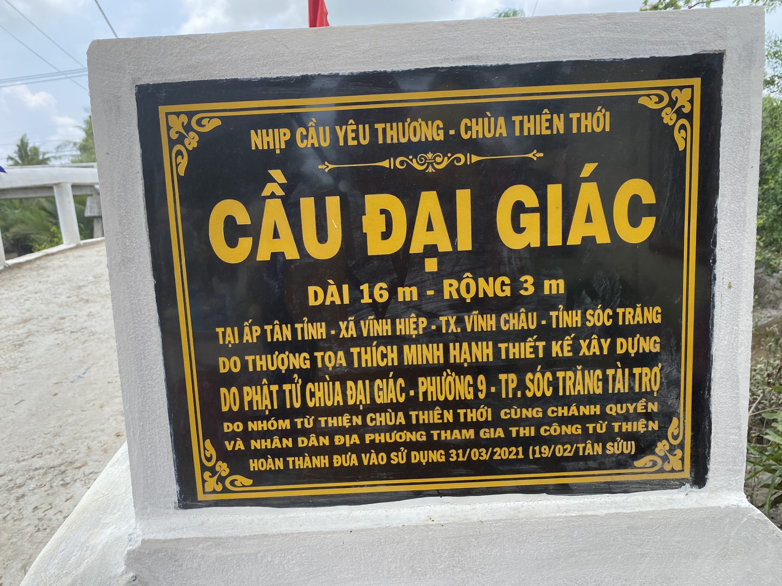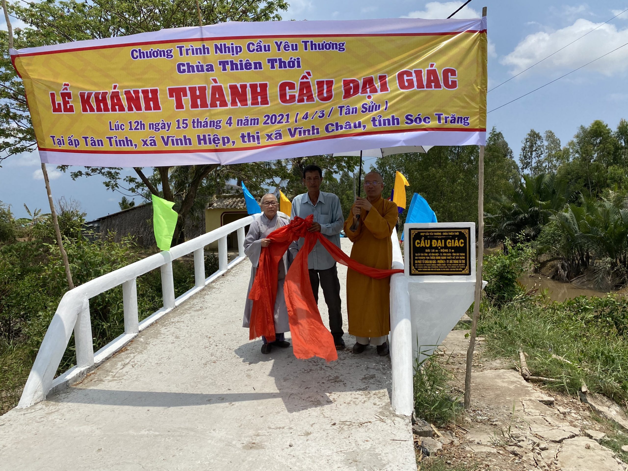 Ngày 15/04/2021 (nhằm ngày mùng 4/03 năm Tân Sửu) cắt băng khánh thành cầu Đại Giác tại ấp Tân Tỉnh, xã Vĩnh Hiệp, TX.Vĩnh Châu. Cầu dài 16 mét, ngang 3 mét, kết cấu bê tông cốt sắt, tải trọng 2 tấn, do quý Phật tử chùa Đại Giác TP.Sóc Trăng tài trợ kinh phí vật tư.