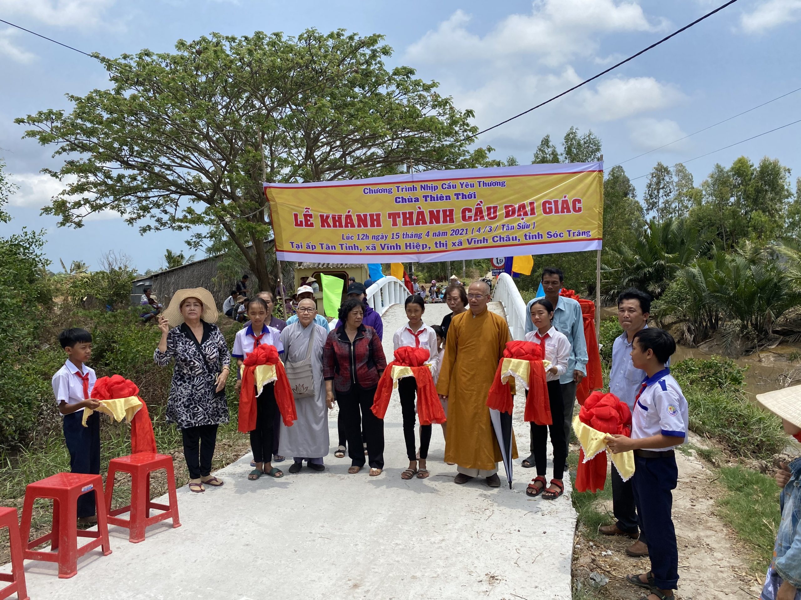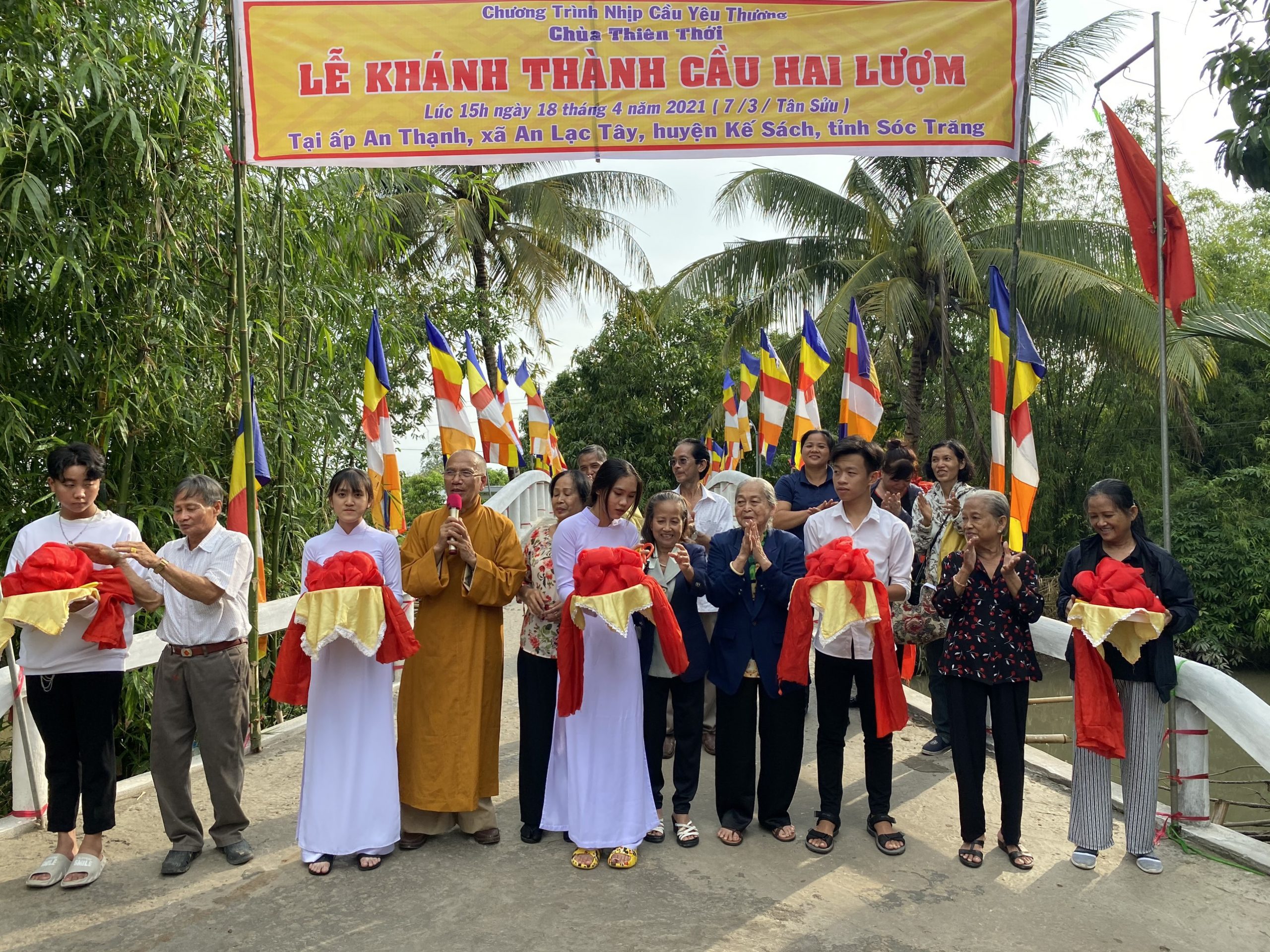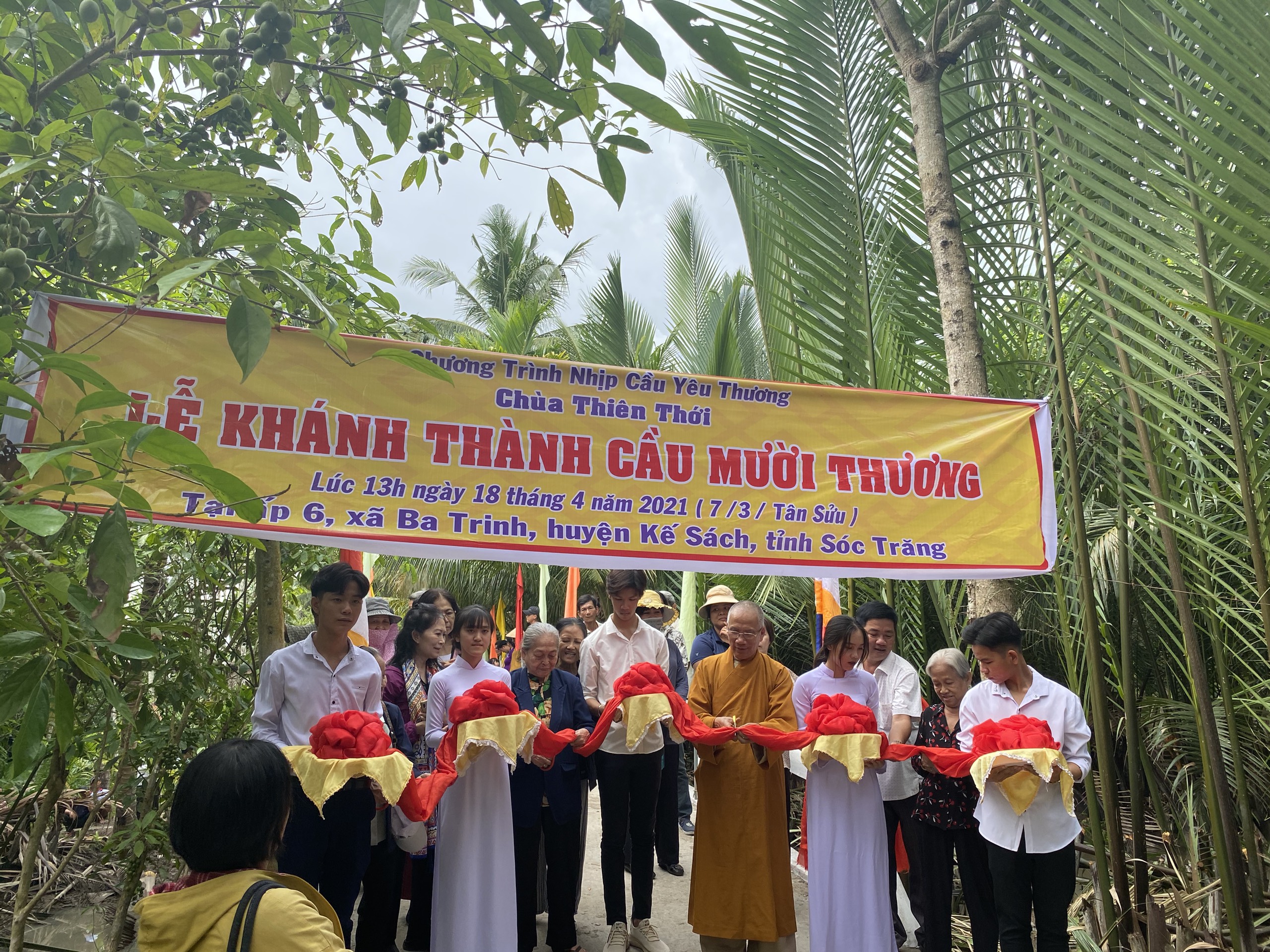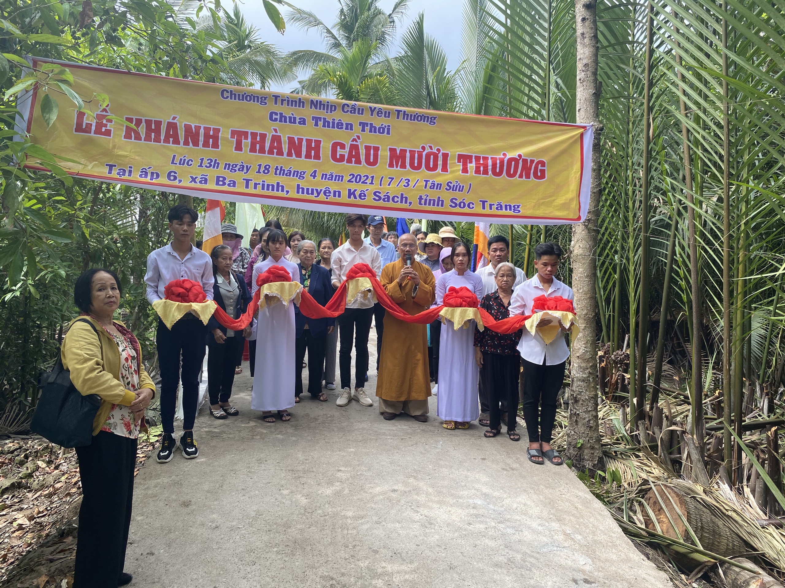 PSO – Trong hai ngày 15 và 18/04/2021 (nhằm ngày mùng 4 và 7/03 năm Tân Sửu) được sự hỗ trợ của chính quyền địa phương cùng quý Phật tử hảo tâm, Hòa thượng Thích Minh Hạnh - Ủy viên HĐTS, Phó trưởng Ban Thường trực BTS GHPGVN tỉnh Sóc Trăng, Trụ trì chùa Thiên Thới (xã Thới An Hội, huyện Kế Sách, tỉnh Sóc Trăng), người sáng lập "Nhịp cầu Yêu thương" đã tiến hành cắt băng khánh thành 4 cây cầu nông thôn; đồng thời trao tặng 200 phần quà cho người nghèo với tổng giá trị 680 triệu đồng.