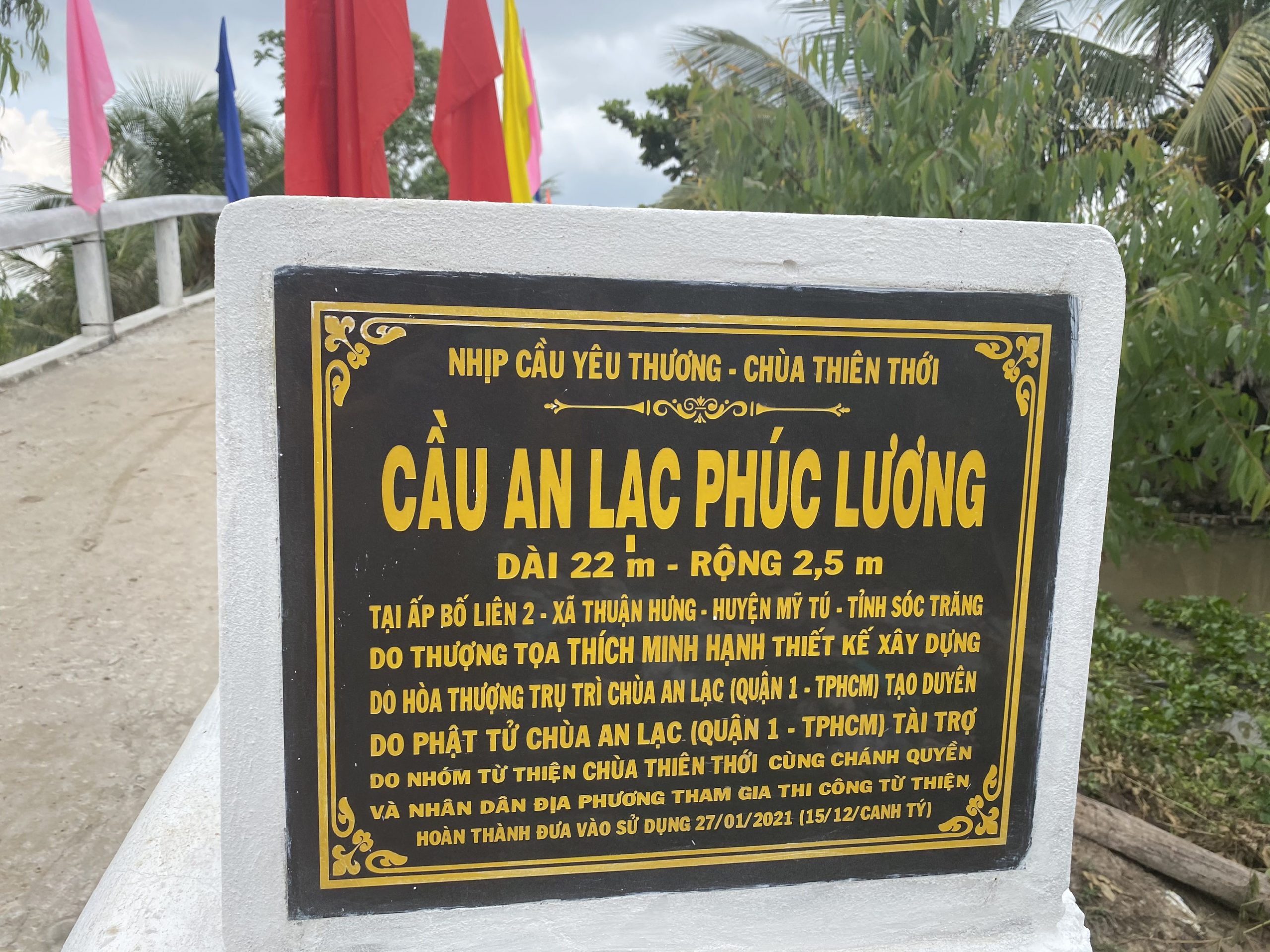 Ngày 18/04/2021 (nhằm ngày mùng 7/03 năm Tân Sửu) khánh thành cầu An Lạc Phúc Lương dài 22 mét, ngang 2,5 mét, tọa lạc tại ấp Bố Liên 2, xã Thuận Hưng, huyện Mỹ Tú, do Hòa thượng Trụ trì cùng quý Phật tử chùa An Lạc (quận 1, TP.HCM) ủng hộ vật tư xây dựng.