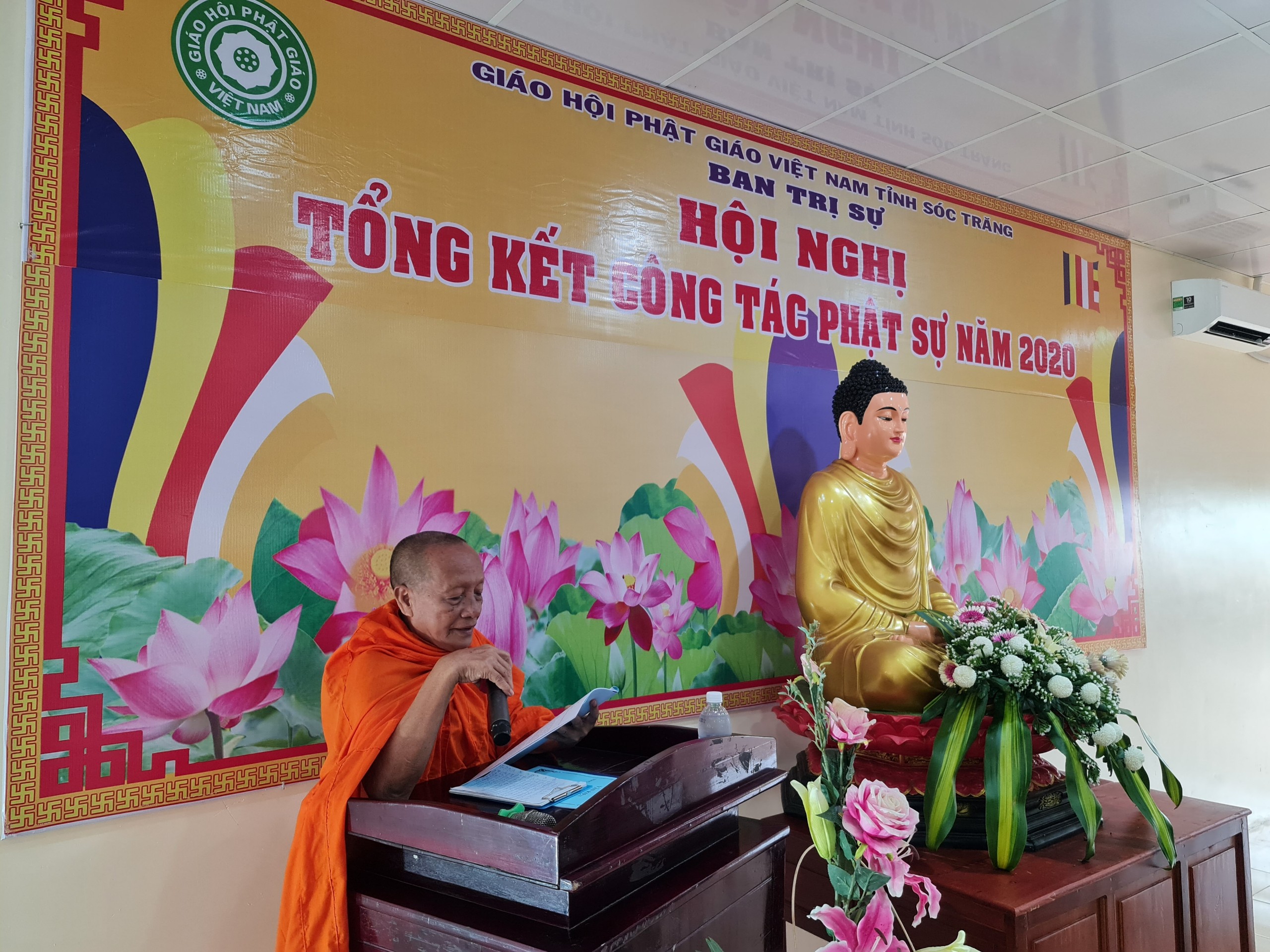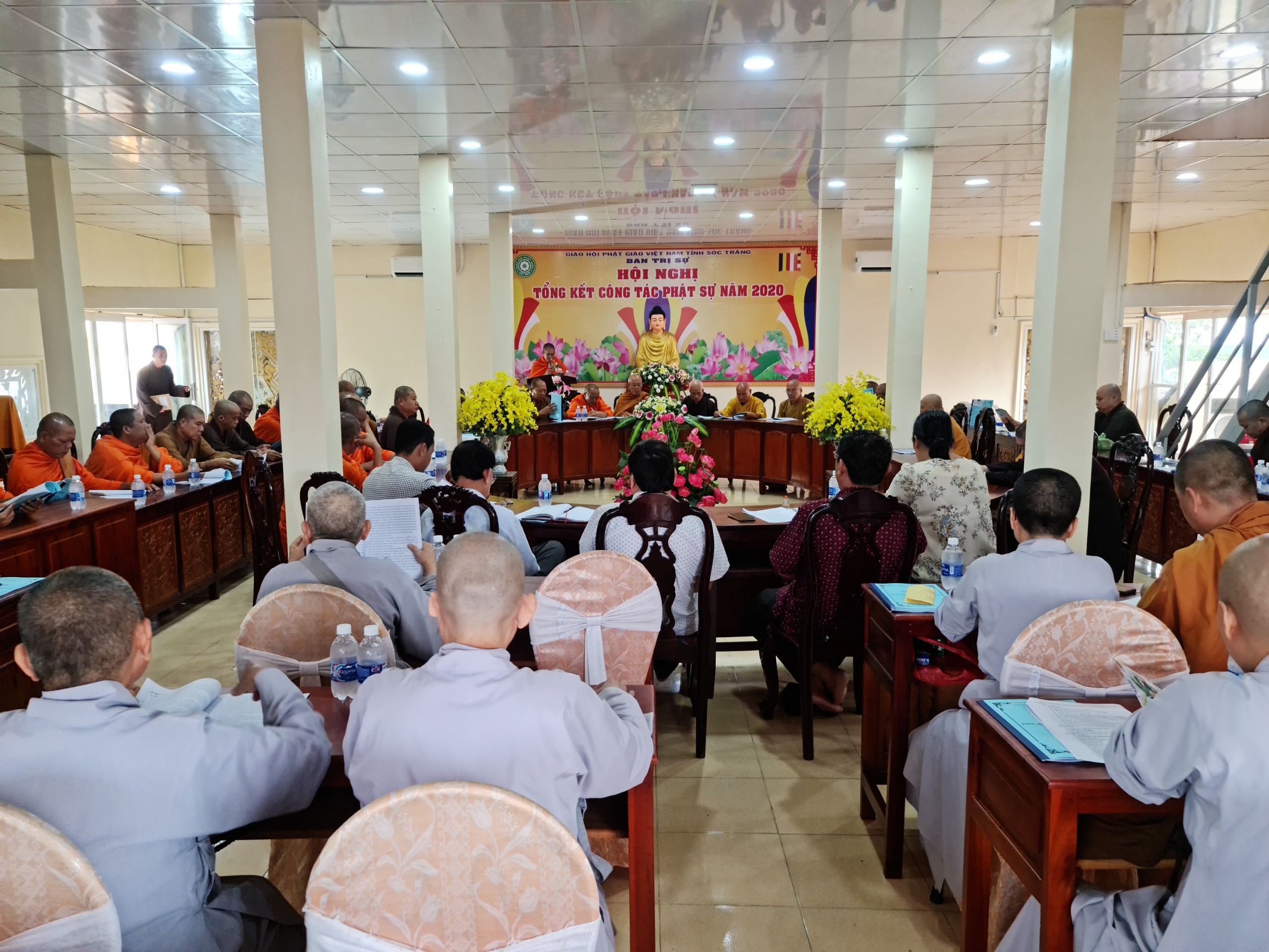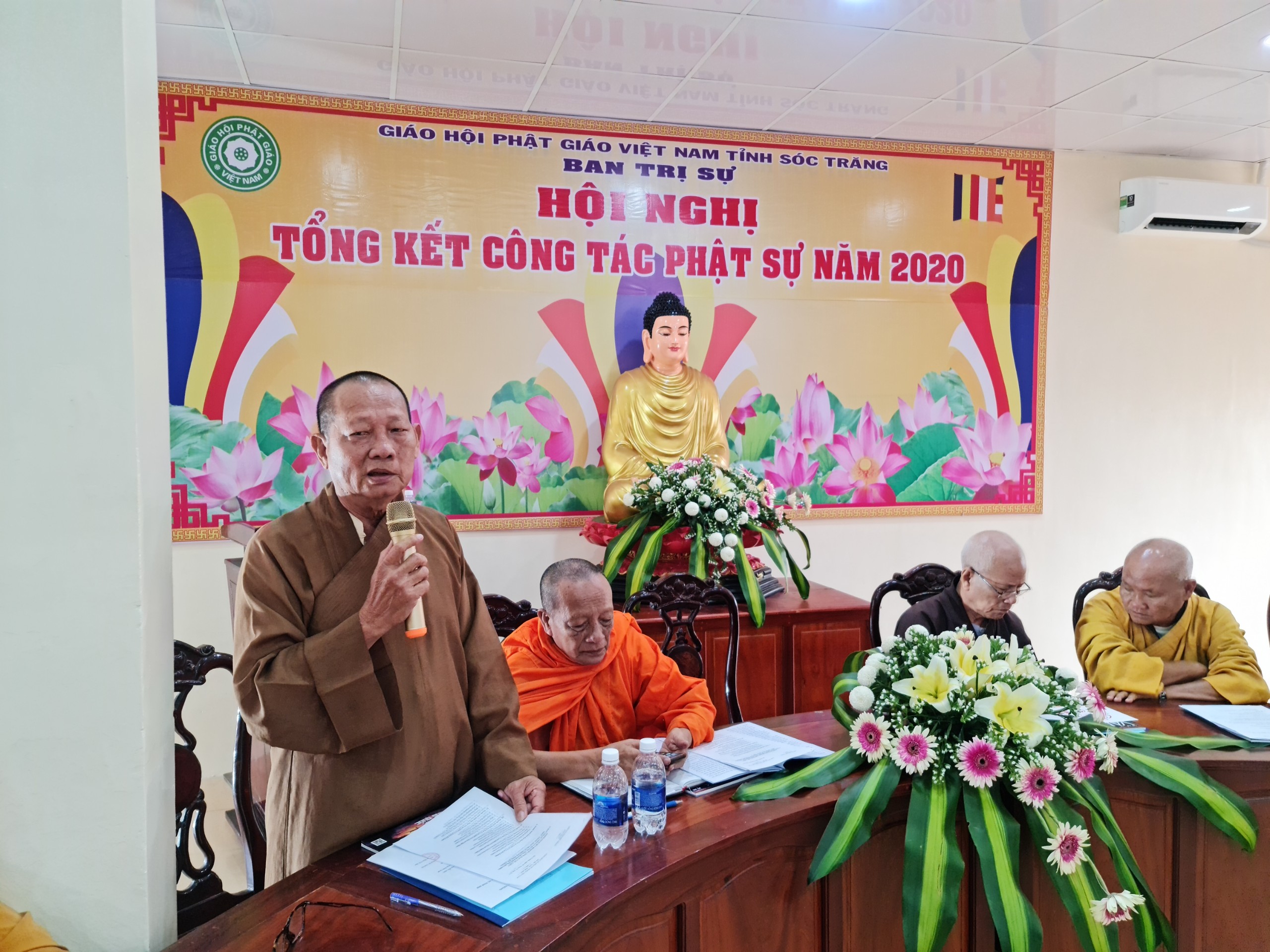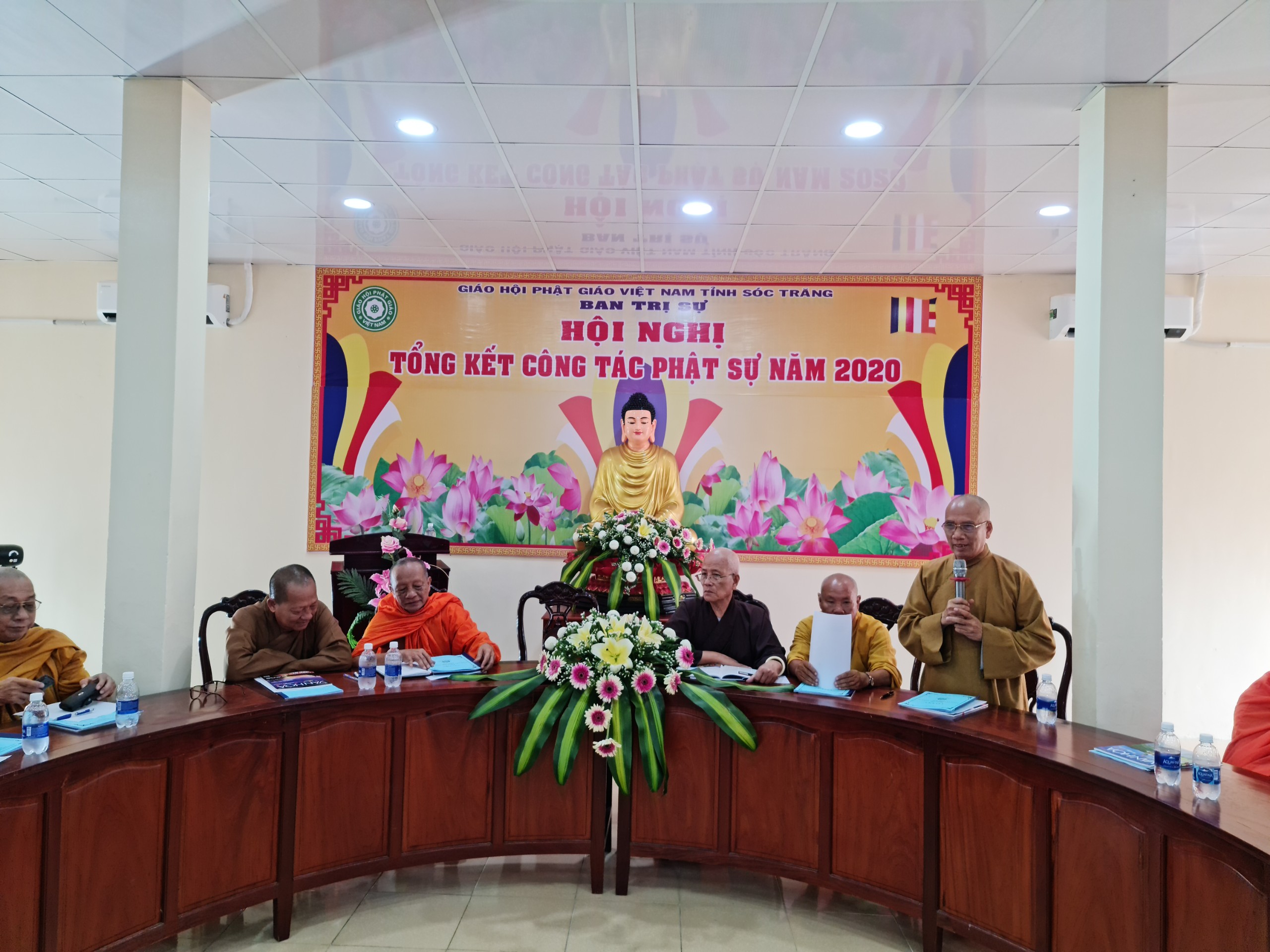 TT.Trần Văn Tha - UV HĐTS, Phó Thư ký BTS Phật giáo tỉnh báo cáo Tổng kết công tác Phật sự năm 2020.TT.Trần Văn Tha - UV HĐTS, Phó Thư ký BTS Phật giáo tỉnh báo cáo tổng kết công tác Phật sự năm 2020. Theo đó, thành quả đạt được trong năm qua là hoàn thành xuất sắc mọi công tác theo chương trình đề ra. Tuy rằng còn khó khăn bởi năm 2020 cả nước phải phòng chống dịch bệnh Covid 19, nhưng với tinh thần đoàn kết mạnh mẽ, ý chí hòa hợp thanh tịnh giữa 2 hệ phái Nam tông và Bắc tông luôn hỗ trợ tích cực các ban, ngành trực thuộc thực hiện tốt công tác chuyên môn, góp phần vào thành tựu chung của Phật giáo tỉnh trong năm 2020. Nỗi bậc trong năm qua vẫn là công tác từ thiện xã hội, với tâm từ bi, cứu khổ ban vui của đạo Phật, các tự viện trong tỉnh luôn tích cực đồng hành và chia sẽ khó khăn với bà con nghèo trên khắp vùng, miền cả nước. Đặc biệt là việc cứu trợ đồng bào miền Trung bị thiên tai lũ lụt. BTS Phật giáo tỉnh thành lập đoàn cùng các tự viện chia làm 10 đợt trực tiếp đến miền Trung hỗ trợ, giúp đỡ đồng bào vượt qua khó khăn. Tổng số tiền từ thiện xã hội trong năm 2020 là gần 68 tỷ đồng.