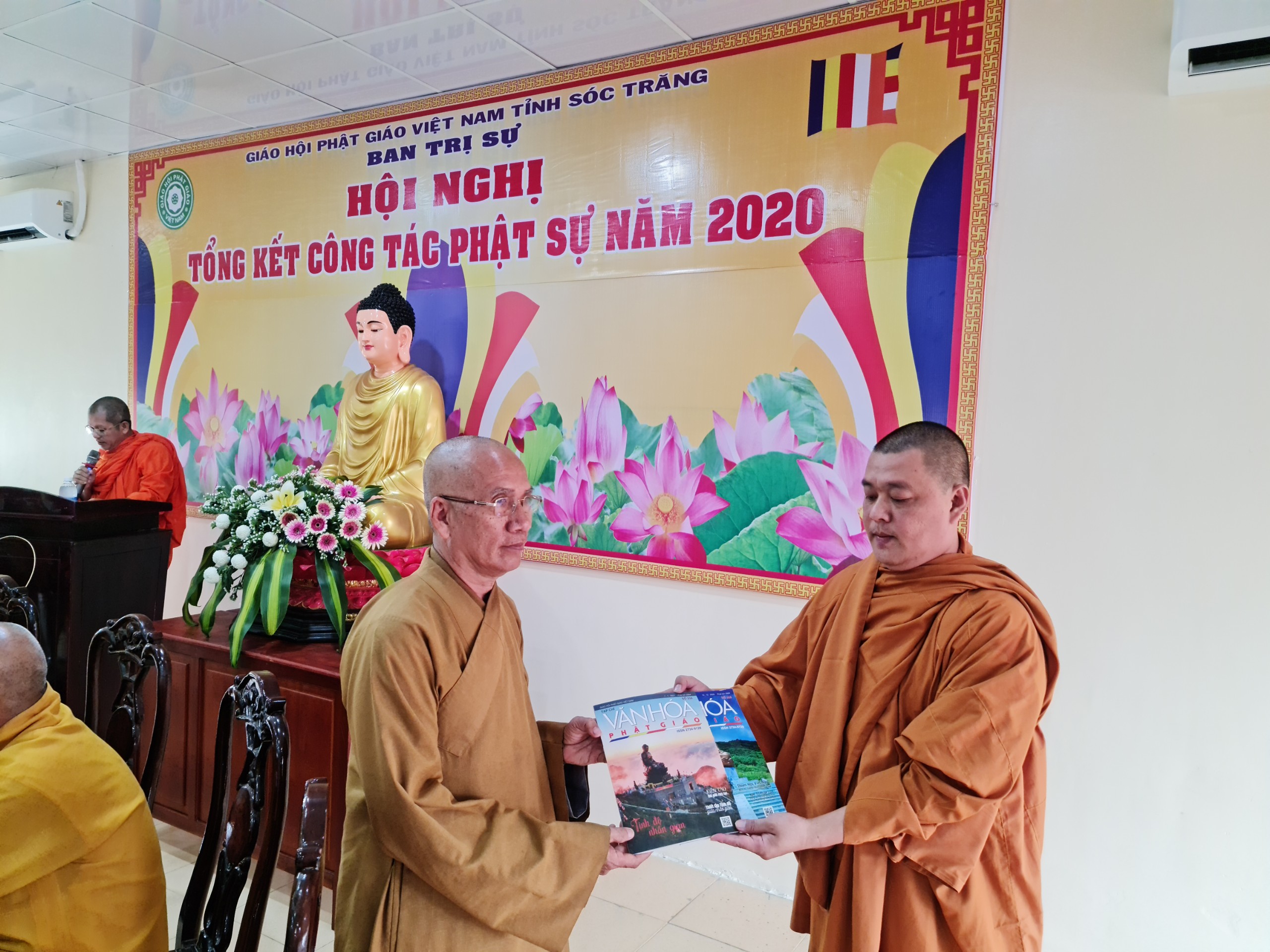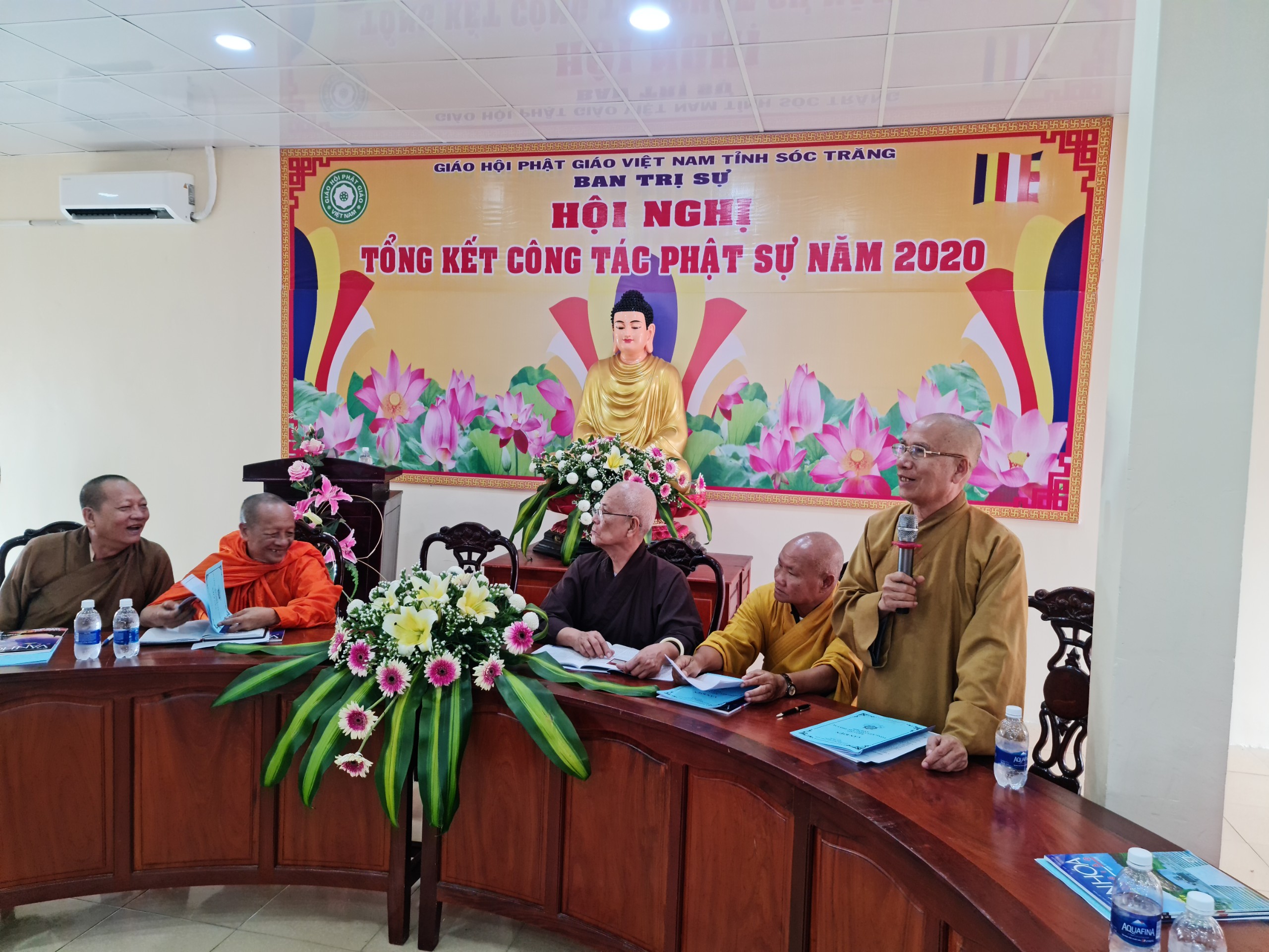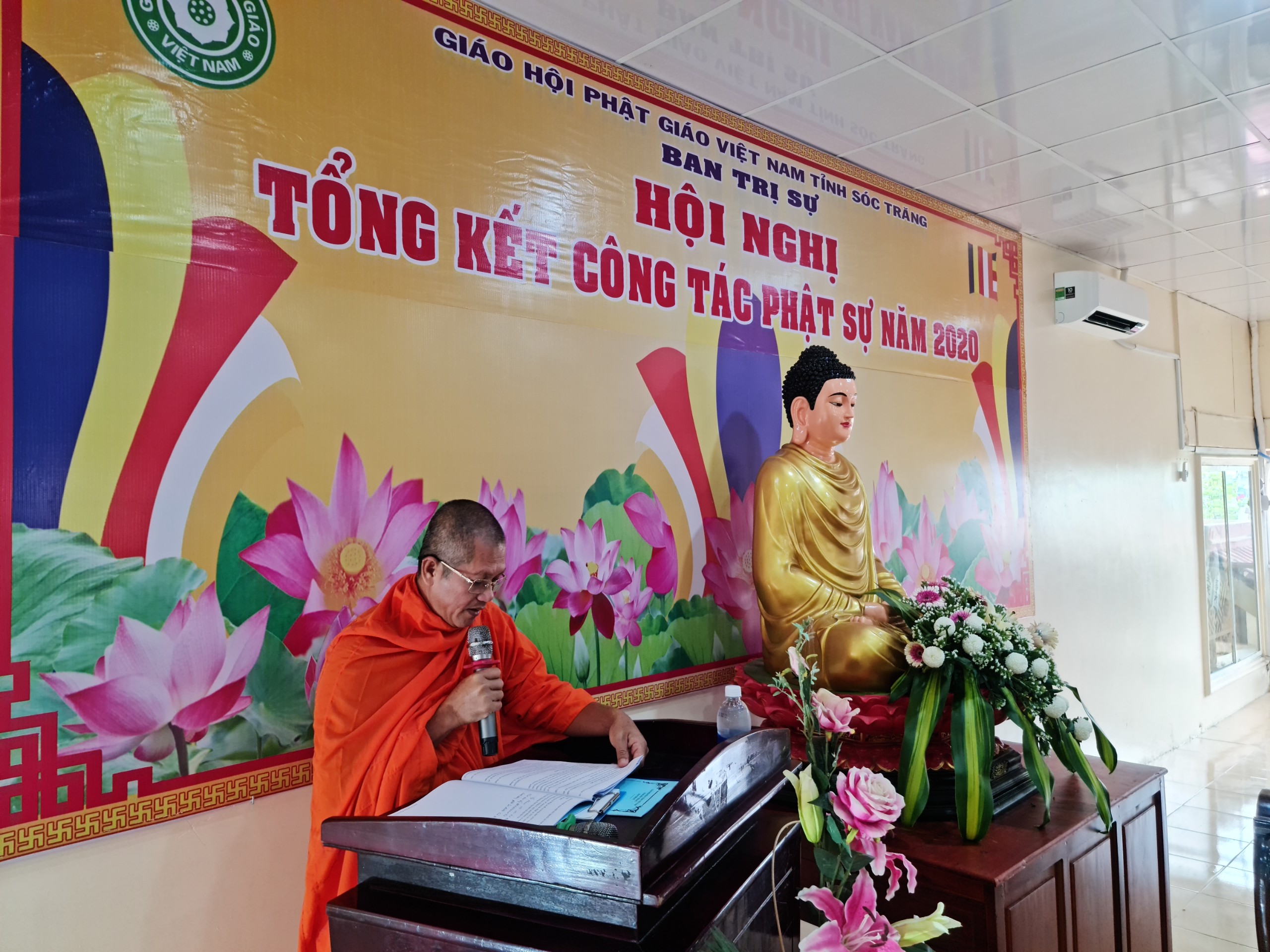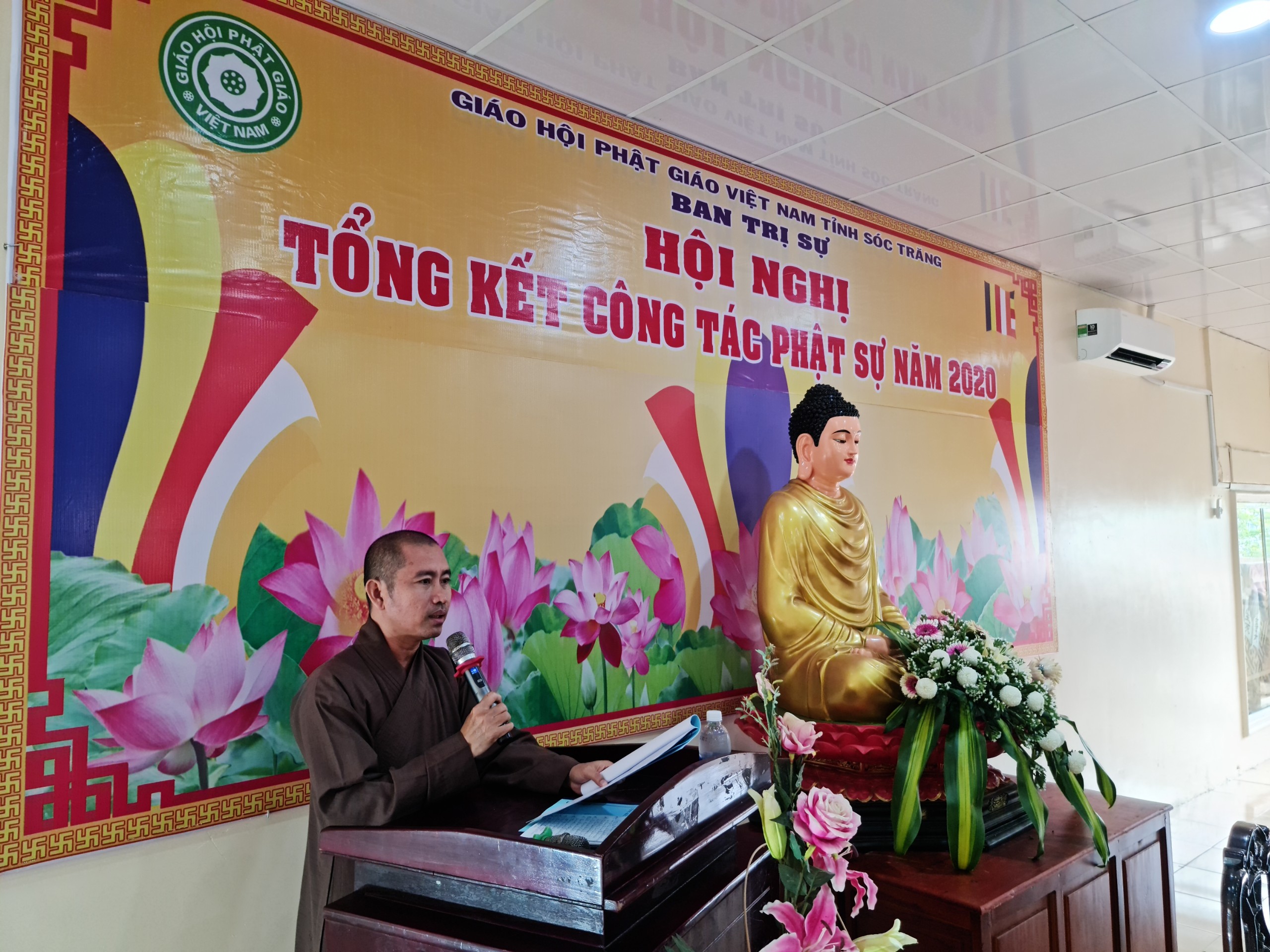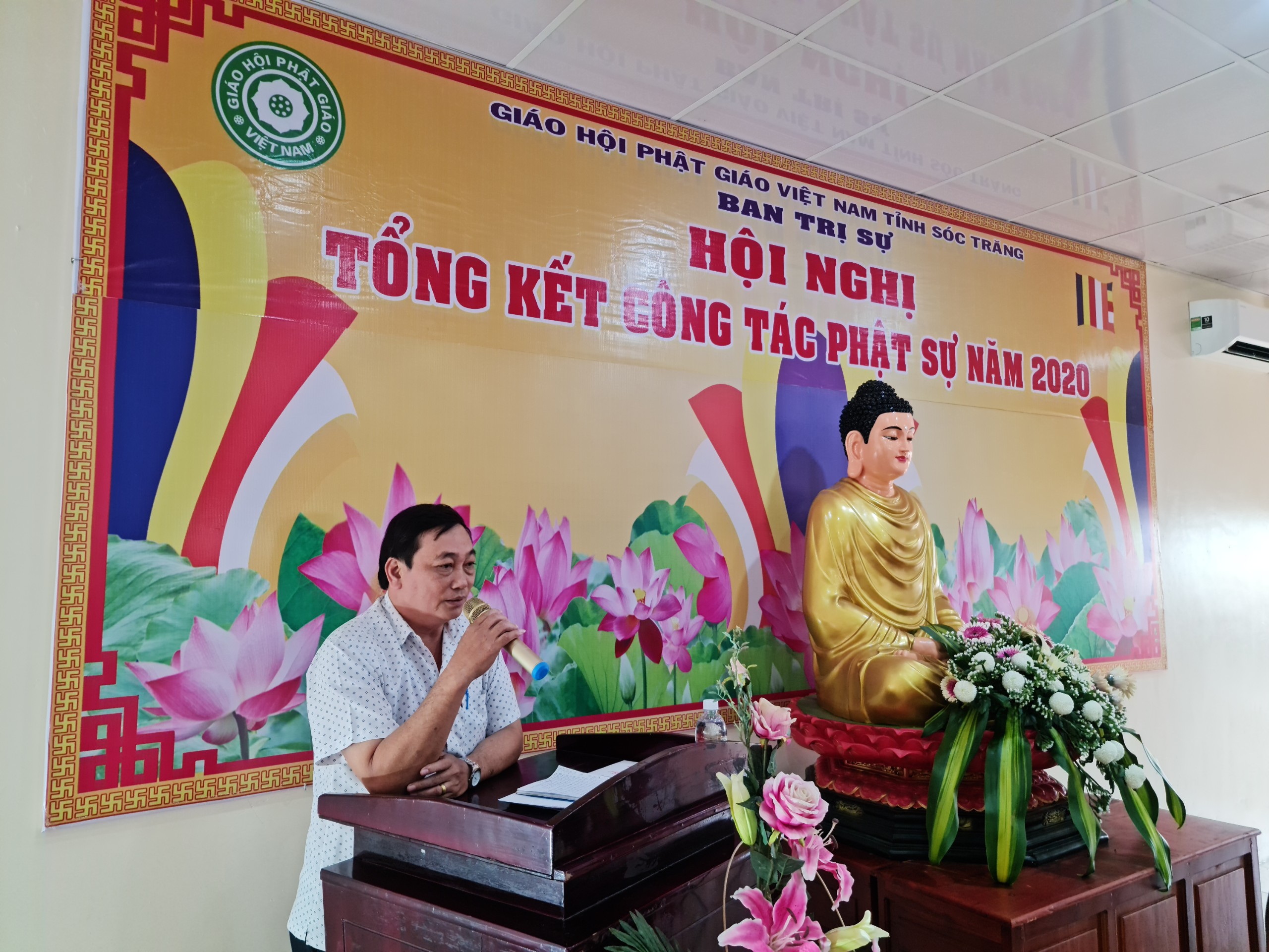 TT.Trần Văn Tha - UV HĐTS, Phó Thư ký BTS Phật giáo tỉnh báo cáo Tổng kết công tác Phật sự năm 2020.TT.Trần Văn Tha - UV HĐTS, Phó Thư ký BTS Phật giáo tỉnh báo cáo tổng kết công tác Phật sự năm 2020. Theo đó, thành quả đạt được trong năm qua là hoàn thành xuất sắc mọi công tác theo chương trình đề ra. Tuy rằng còn khó khăn bởi năm 2020 cả nước phải phòng chống dịch bệnh Covid 19, nhưng với tinh thần đoàn kết mạnh mẽ, ý chí hòa hợp thanh tịnh giữa 2 hệ phái Nam tông và Bắc tông luôn hỗ trợ tích cực các ban, ngành trực thuộc thực hiện tốt công tác chuyên môn, góp phần vào thành tựu chung của Phật giáo tỉnh trong năm 2020. Nỗi bậc trong năm qua vẫn là công tác từ thiện xã hội, với tâm từ bi, cứu khổ ban vui của đạo Phật, các tự viện trong tỉnh luôn tích cực đồng hành và chia sẽ khó khăn với bà con nghèo trên khắp vùng, miền cả nước. Đặc biệt là việc cứu trợ đồng bào miền Trung bị thiên tai lũ lụt. BTS Phật giáo tỉnh thành lập đoàn cùng các tự viện chia làm 10 đợt trực tiếp đến miền Trung hỗ trợ, giúp đỡ đồng bào vượt qua khó khăn. Tổng số tiền từ thiện xã hội trong năm 2020 là gần 68 tỷ đồng.