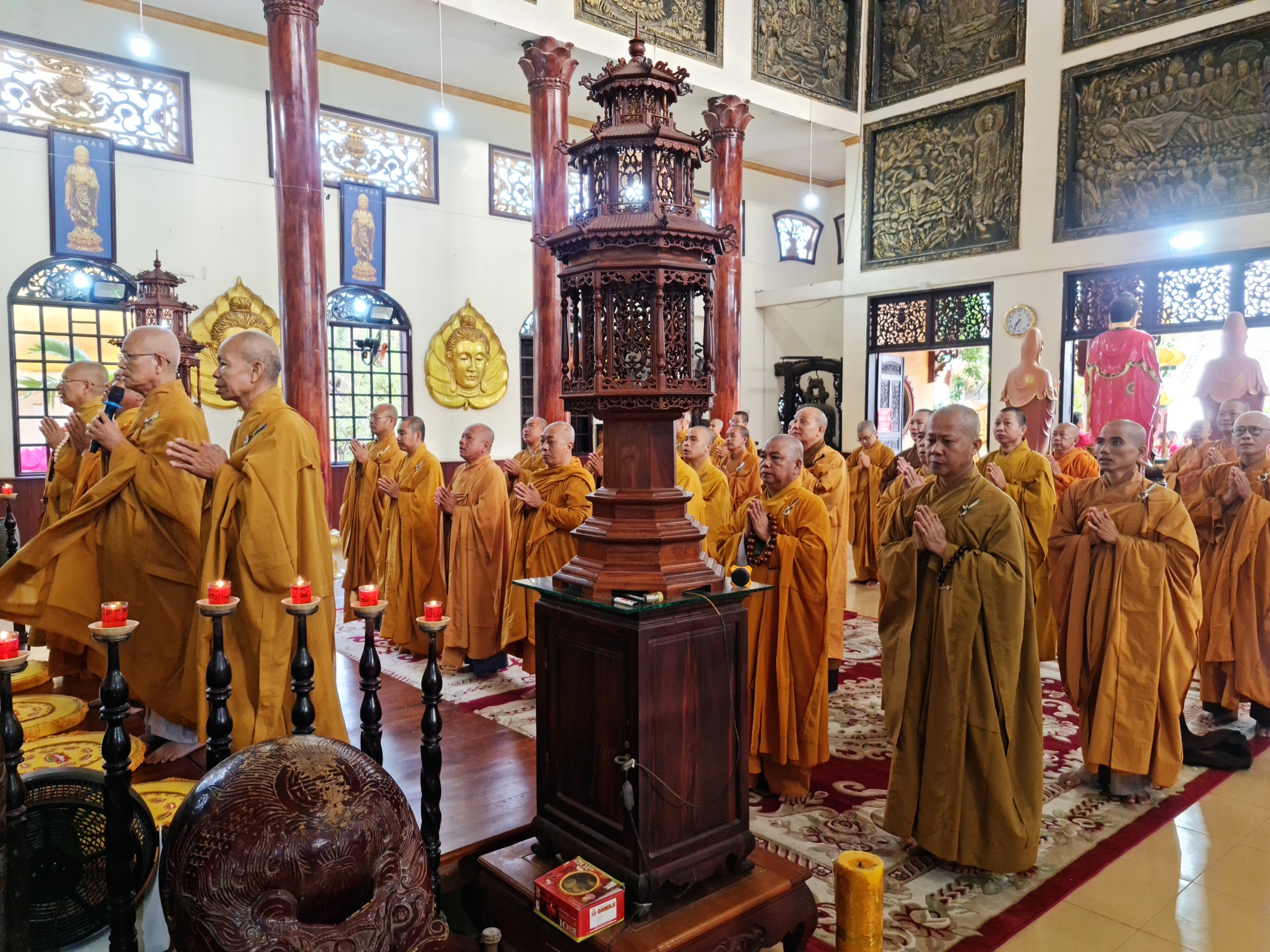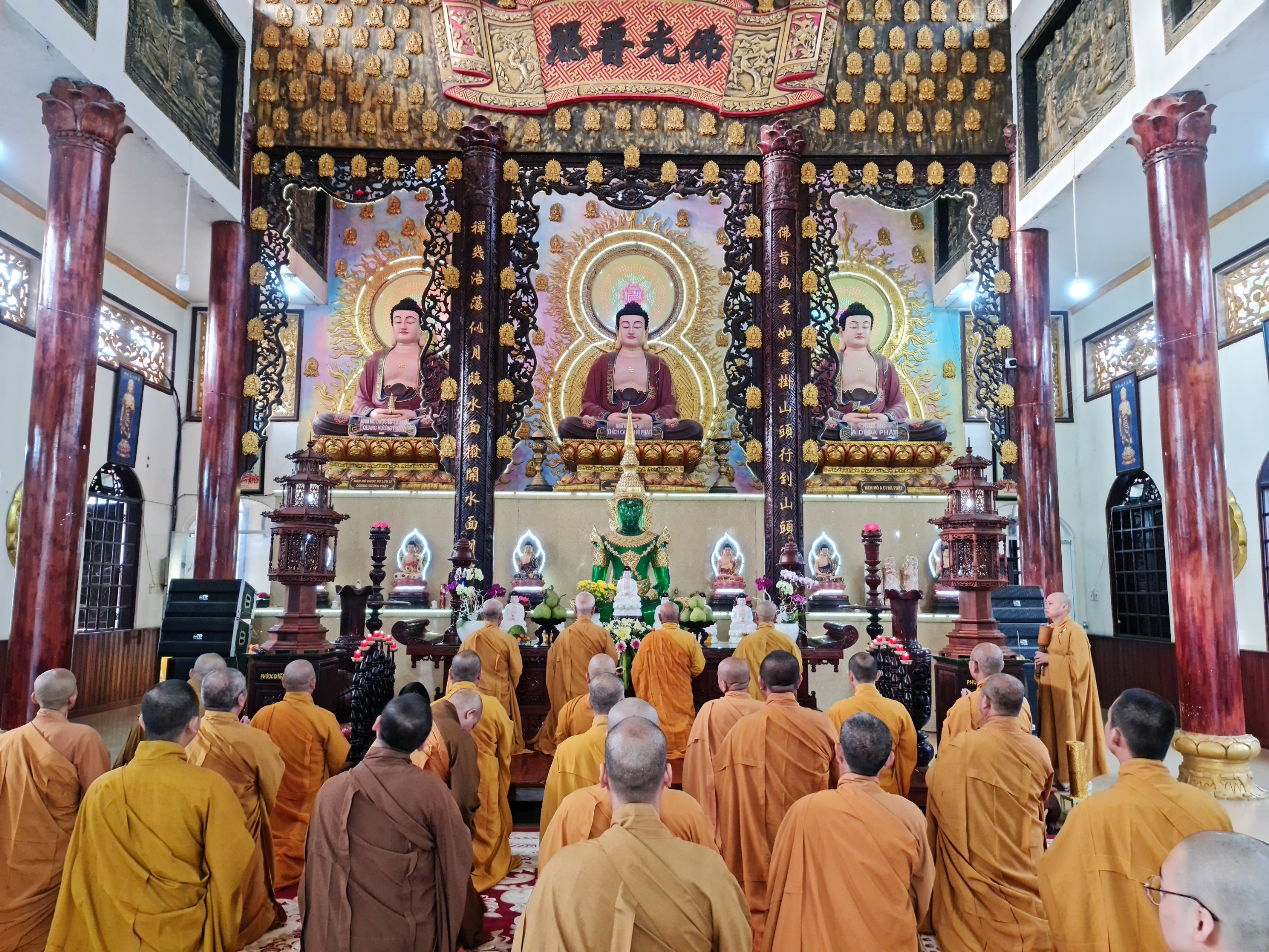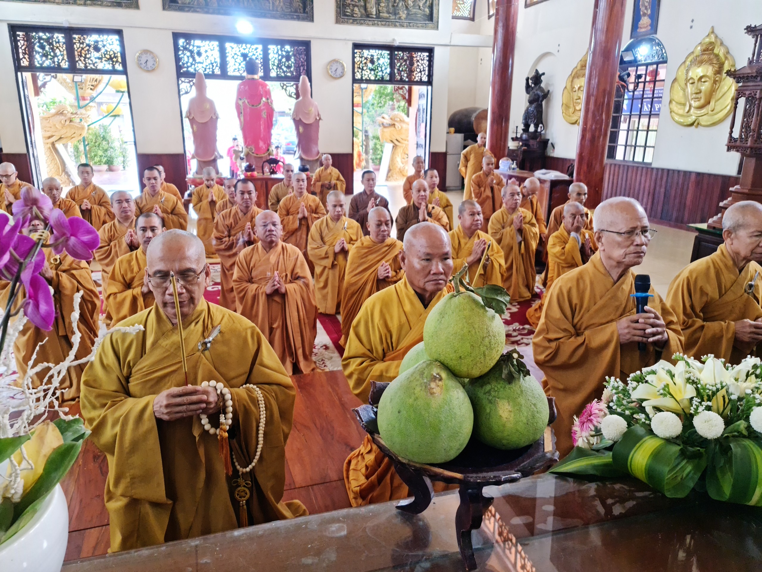 Trước đó tại Chánh điện chùa Hương Sơn (chư Tăng) và chùa Đại Giác (chư Ni) chư tôn đức Tăng Ni trang nghiêm cử hành lễ Bố tát tập trung theo định kỳ hàng tháng vào ngày 28 âm lịch. Tụng Giới luật do Phật chế nhằm giúp củng cố và phát triển sự thanh tịnh của Tăng đoàn góp phần trang nghiêm Giáo hội Phật giáo Việt Nam.