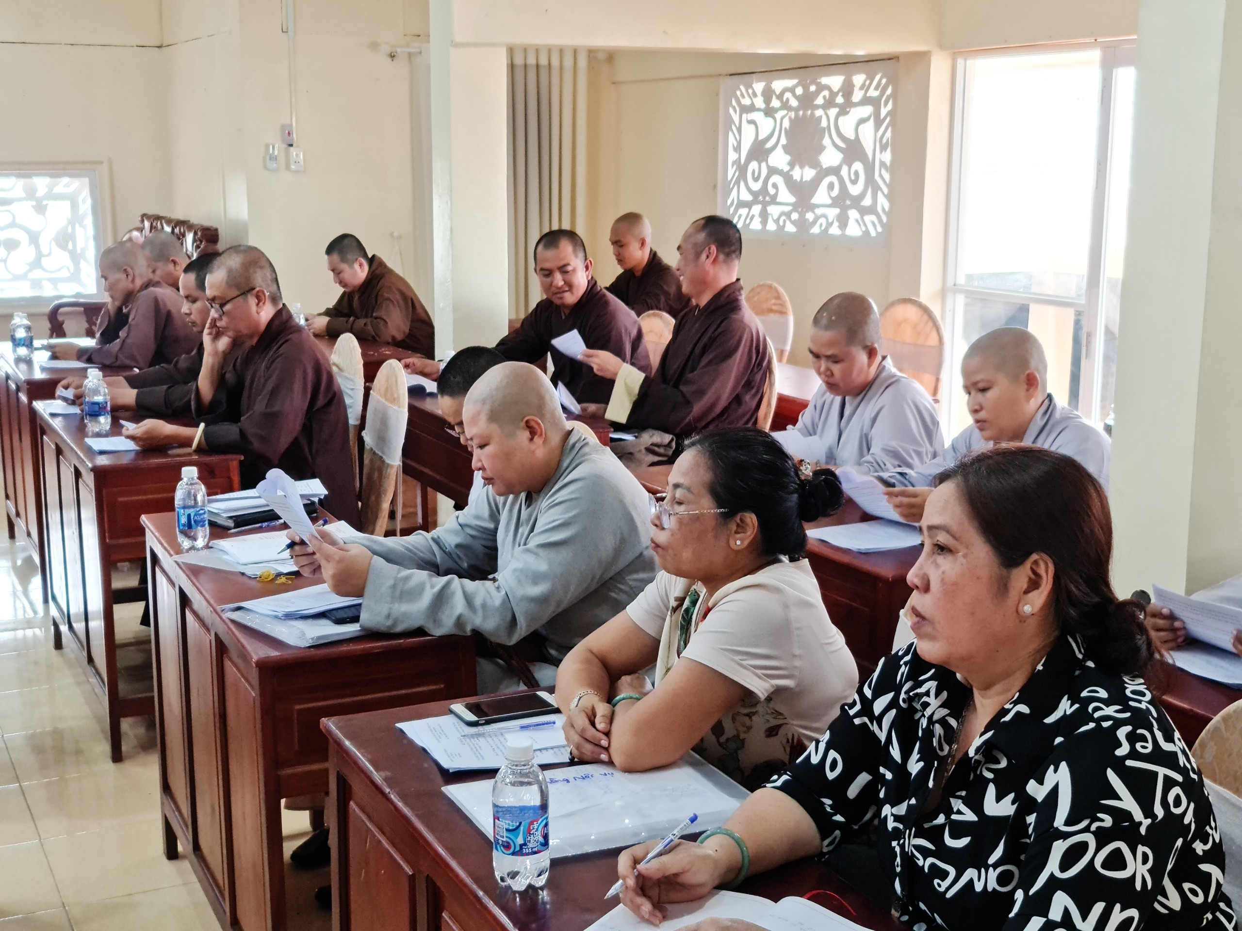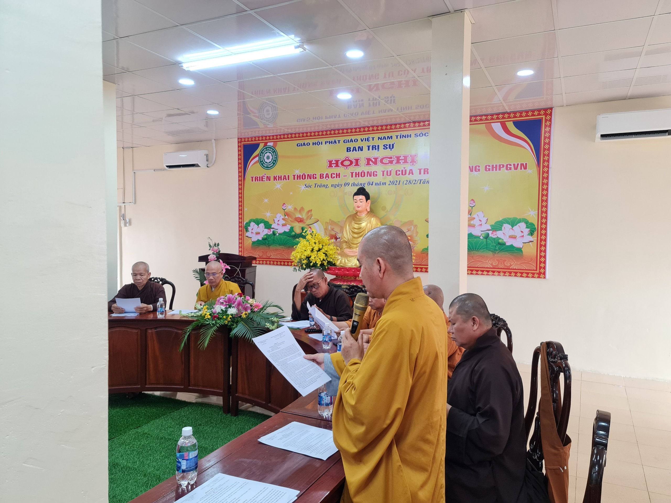 Hội nghị nghe ĐĐ.Thích Định Hương - Phó Thư ký, Chánh văn phòng BTS Phật giáo tỉnh báo cáo sơ kết công tác Phật sự quí I với thành quả đạt được là vô cùng hoan hỷ. Các tự viện trong tỉnh tổ chức đón tết Tân Sửu 2021 đúng theo tinh thần chánh pháp, thực hiện nghiêm theo tiêu chí 5K (khẩu trang, khử khuẩn, khoảng cách, không tập trung, khai báo y tế) của Bộ Y tế. Tổ chức trao tặng quà, hỗ trợ người nghèo đón tết và các công tác từ thiện khác mang lại hiệu quả cao, đạt gần 22 tỷ đồng.
