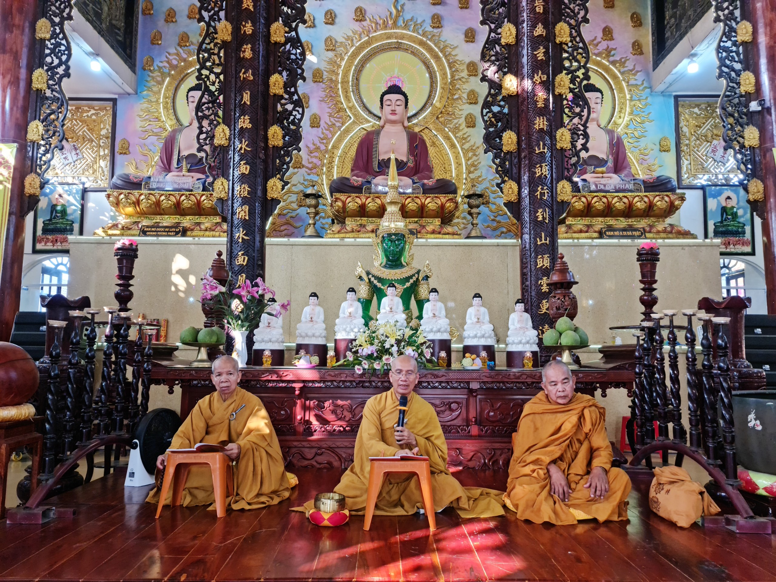 Trước đó, tại chánh điện chùa Hương Sơn, chư Tôn đức trang nghiêm cử hành nghi thức Bố tát - tụng Giới truyền thống, nhằm ôn lại Giới luật do Phật chế để củng cố và phát triển sự thanh tịnh của Tăng đoàn trong thời đại mới.
