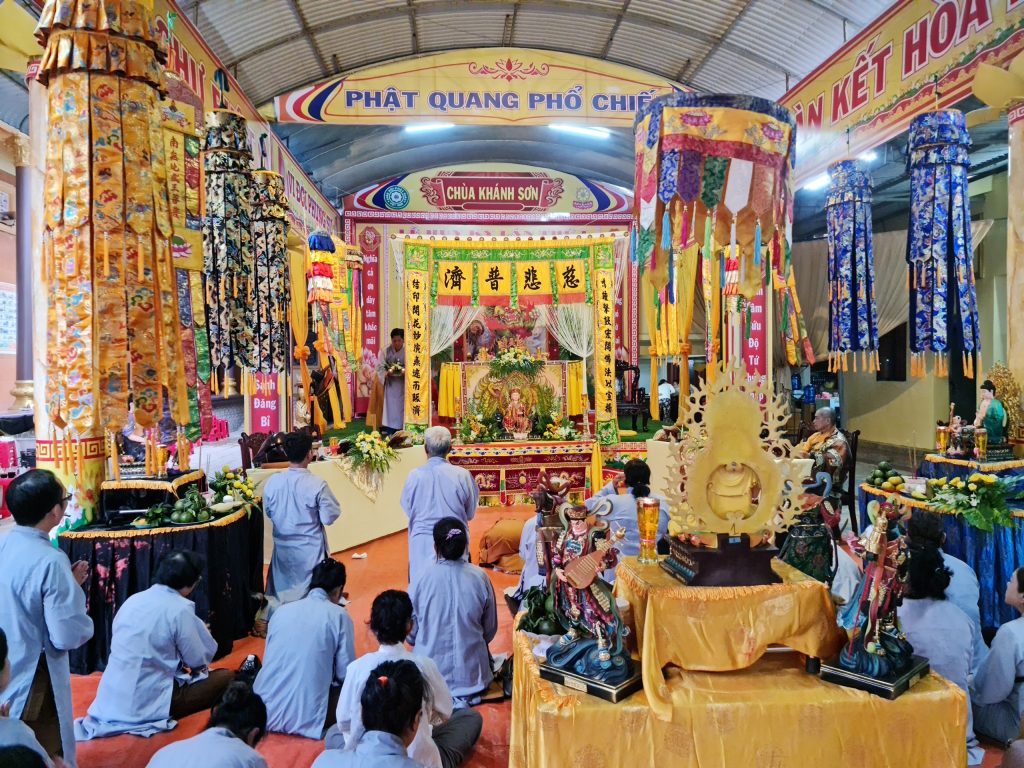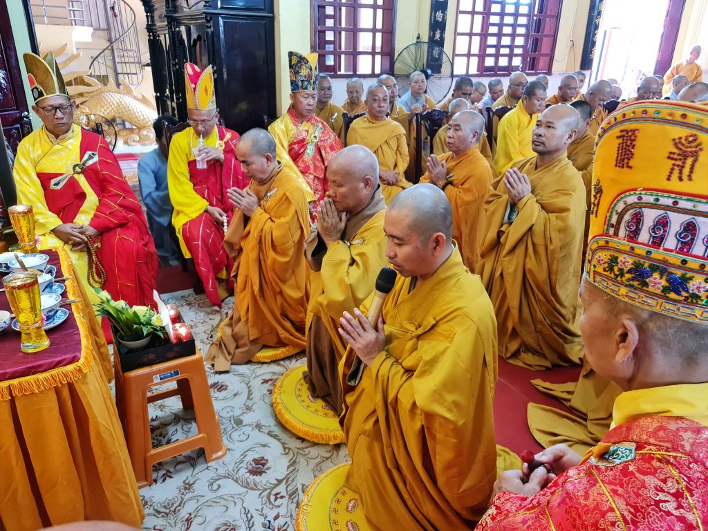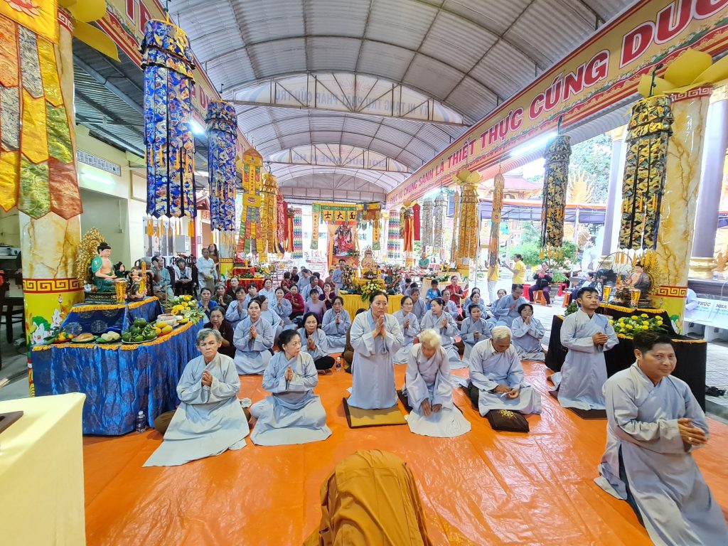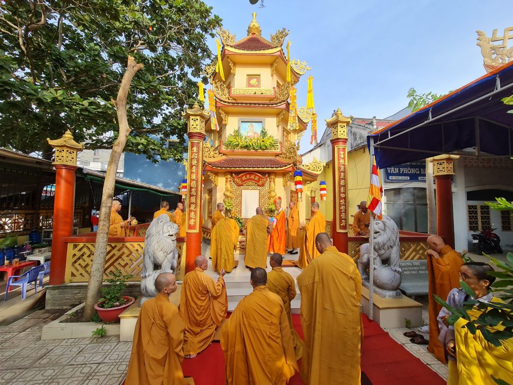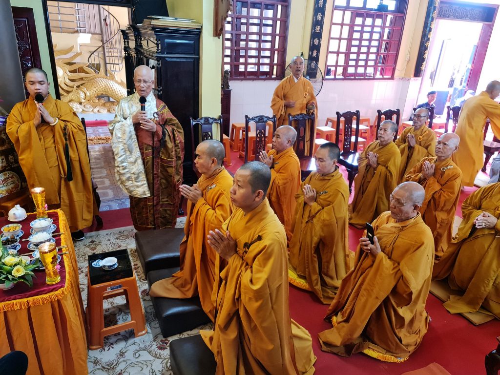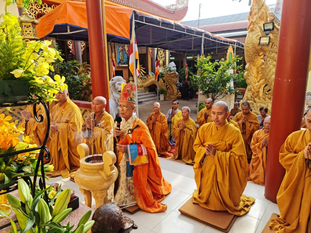 Trước đó HT.Thích Trí Phát đương vi Sám chủ đăng đàn chẩn tế cầu quốc thái dân an, cầu siêu chiến sĩ hy sinh, đồng bào tử nạn. Cử hành nghi thức tảo Tháp, cúng ngọ, cung tiến Giác linh trang nghiêm như pháp.