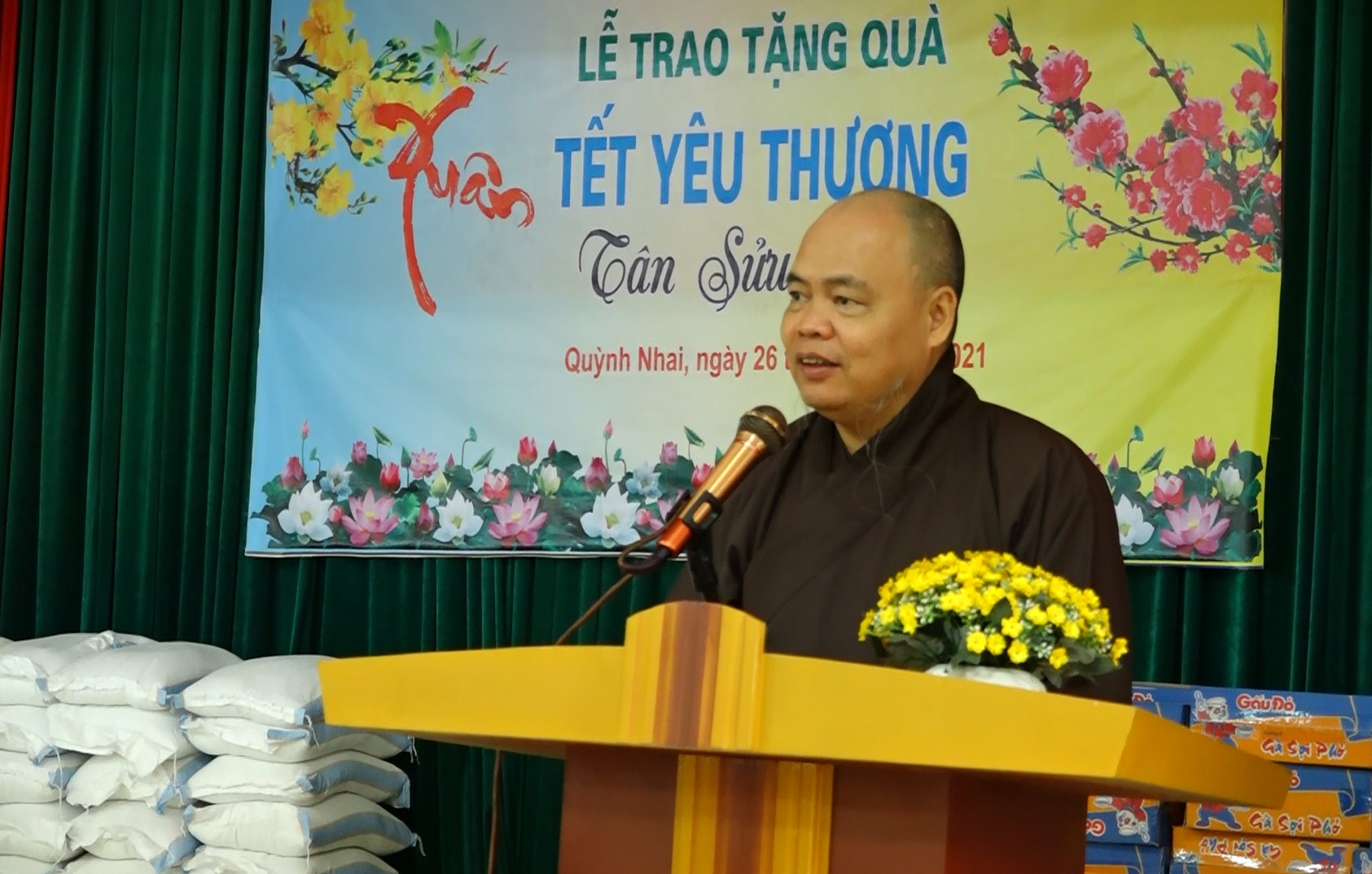 Tại buổi trao quà, Thượng tọa Thích Thanh Phong – Ủy viên Thường trực HĐTS, Trưởng ban Kinh tế Tài chính TƯ GHPGVN, Trưởng ban Từ thiện xã hội Phật giáo TP.HCM gửi lời chúc sức khỏe, chúc bà con hưởng được một mùa xuân an lạc, ấm áp. Thượng tọa cũng mong rằng với những phần quà, tuy giá trị không lớn, nhưng sẽ góp phần đem đến niềm vui đón Tết cho bà con và các cháu thiếu nhi.