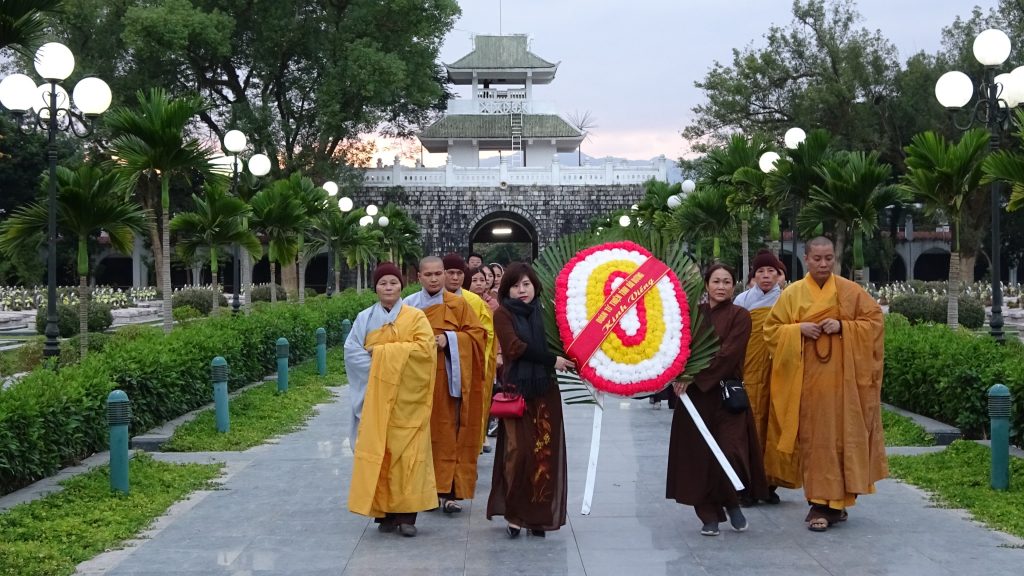 Trên đường về đoàn từ thiện cùng chư Tôn đức đã viếng vòng hoa và lễ Cầu siêu tại nghĩa Trang đồi A1 Điện Biên.