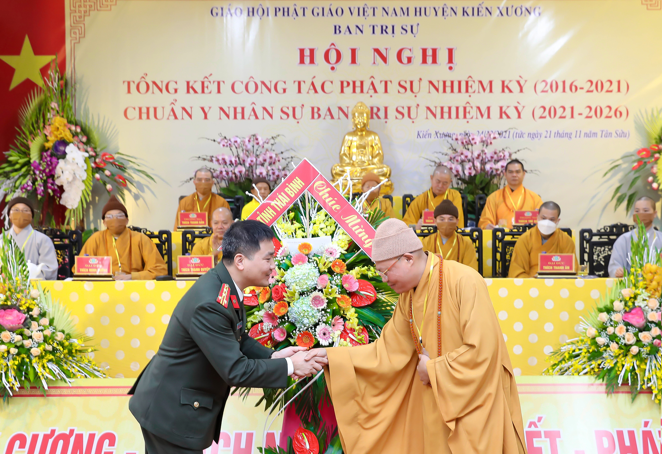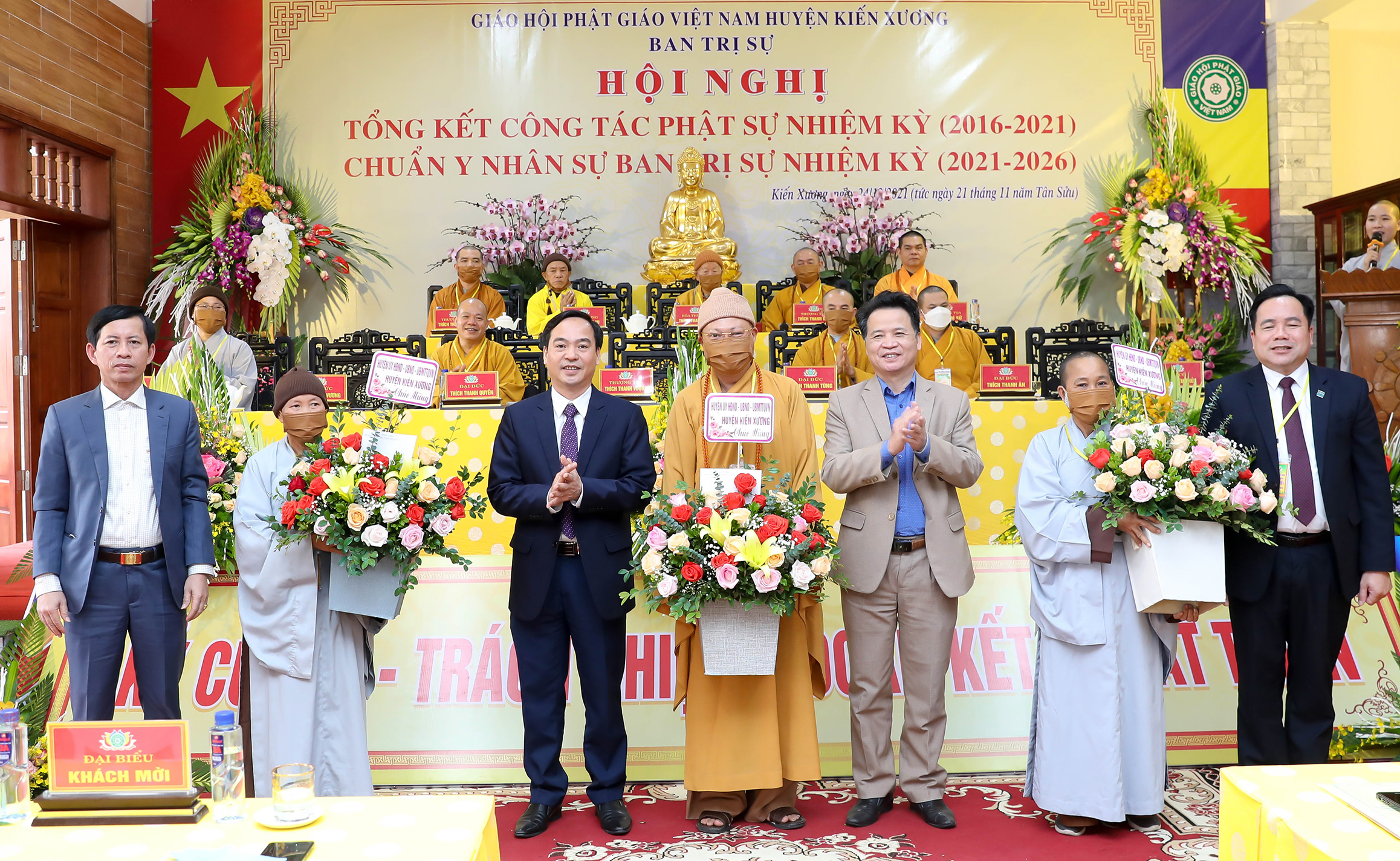 Đại biểu đại diện cho Đảng, chính quyền tỉnh Thái Bình và huyện Kiến Xương có ông Trần Quang Minh - Phó trưởng ban Dân vận Tỉnh ủy; bà Đặng Thị Chiên - Phó chủ tịch Ủy ban MTTQ tỉnh; ông Nguyễn Văn Thạo - Phó trưởng ban Tôn giáo tỉnh; Đại tá Nguyễn Quốc Vương - Phó giám đốc Công an tỉnh; Thượng tá Đỗ Đắc Tuyn - Trưởng phòng An ninh Đối nội Công an tỉnh; ông Vũ Ngọc Trì - Bí thư Huyện ủy huyện Kiến Xương; ông Phạm Việt Hùng - Phó chủ tịch UBND huyện và đại diện cho MTTQ, các phòng ban hữu quan của tỉnh Thái Bình, huyện Kiến Xương, thị trấn Thanh Nê, đại diện đồng bào Phật tử địa phương đã về tham dự và có lẵng hoa tươi thắm chúc mừng Đại hội.
