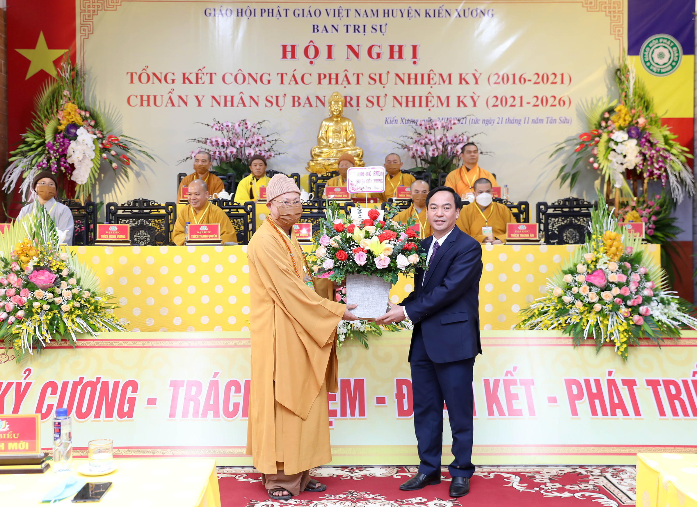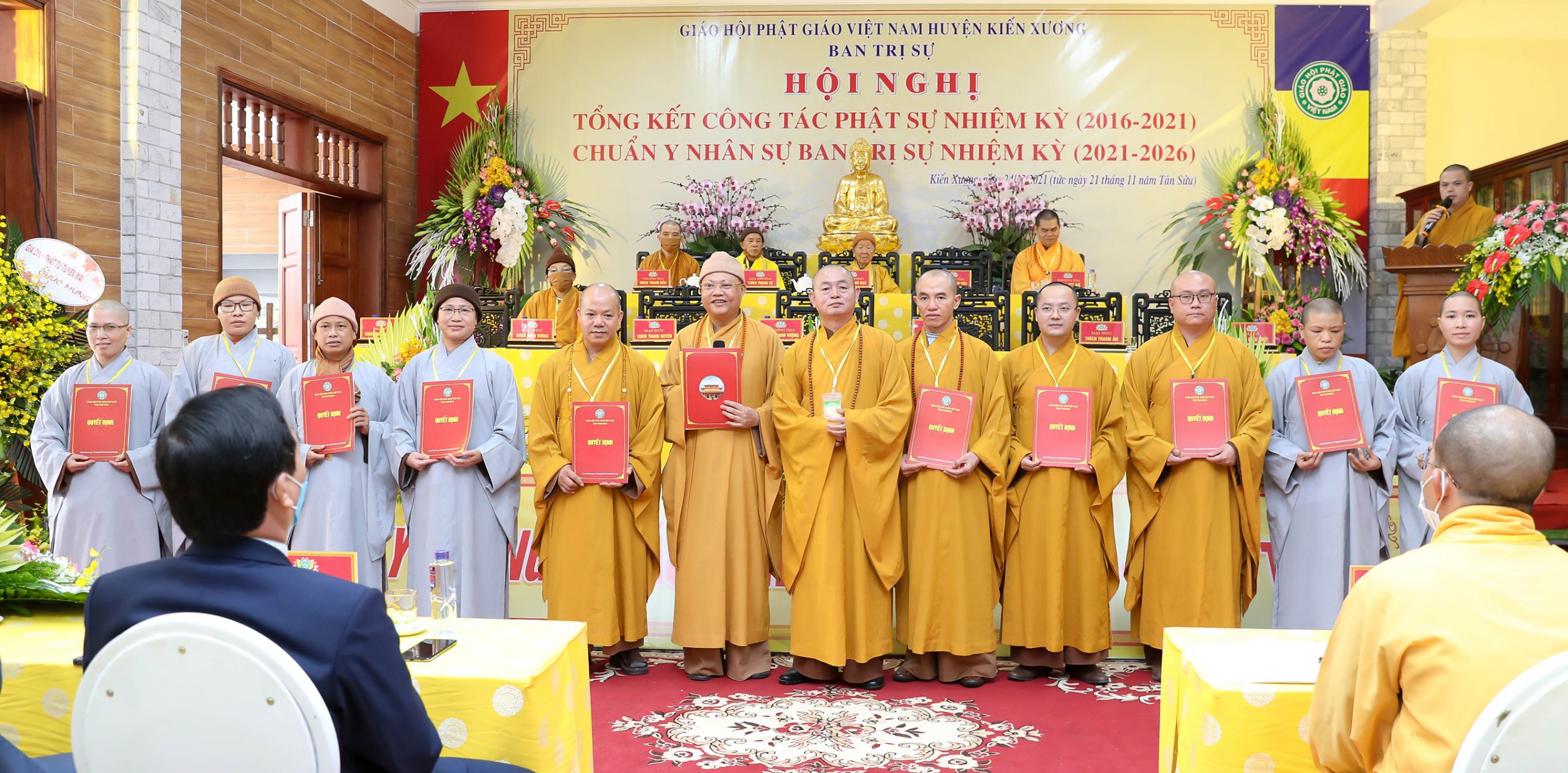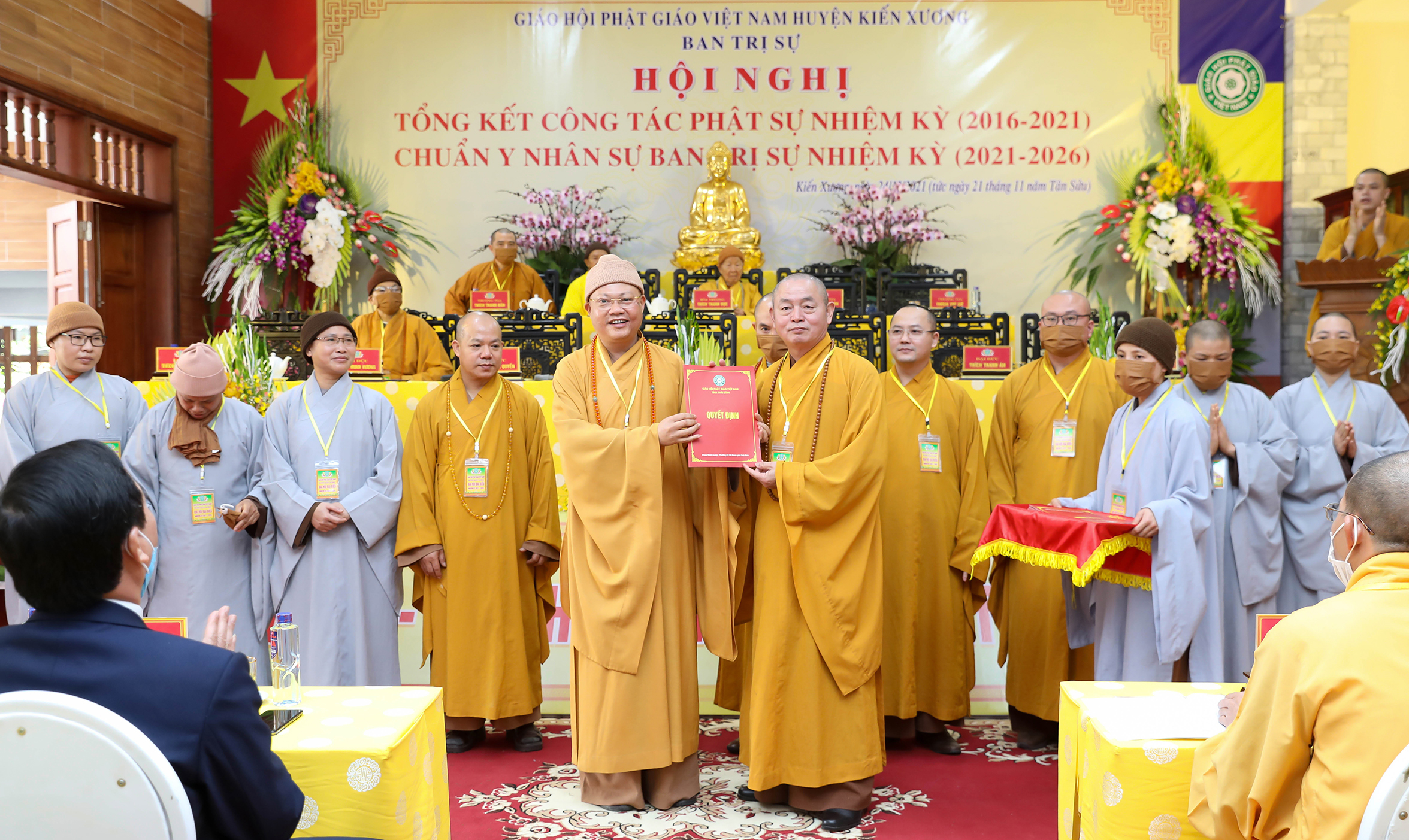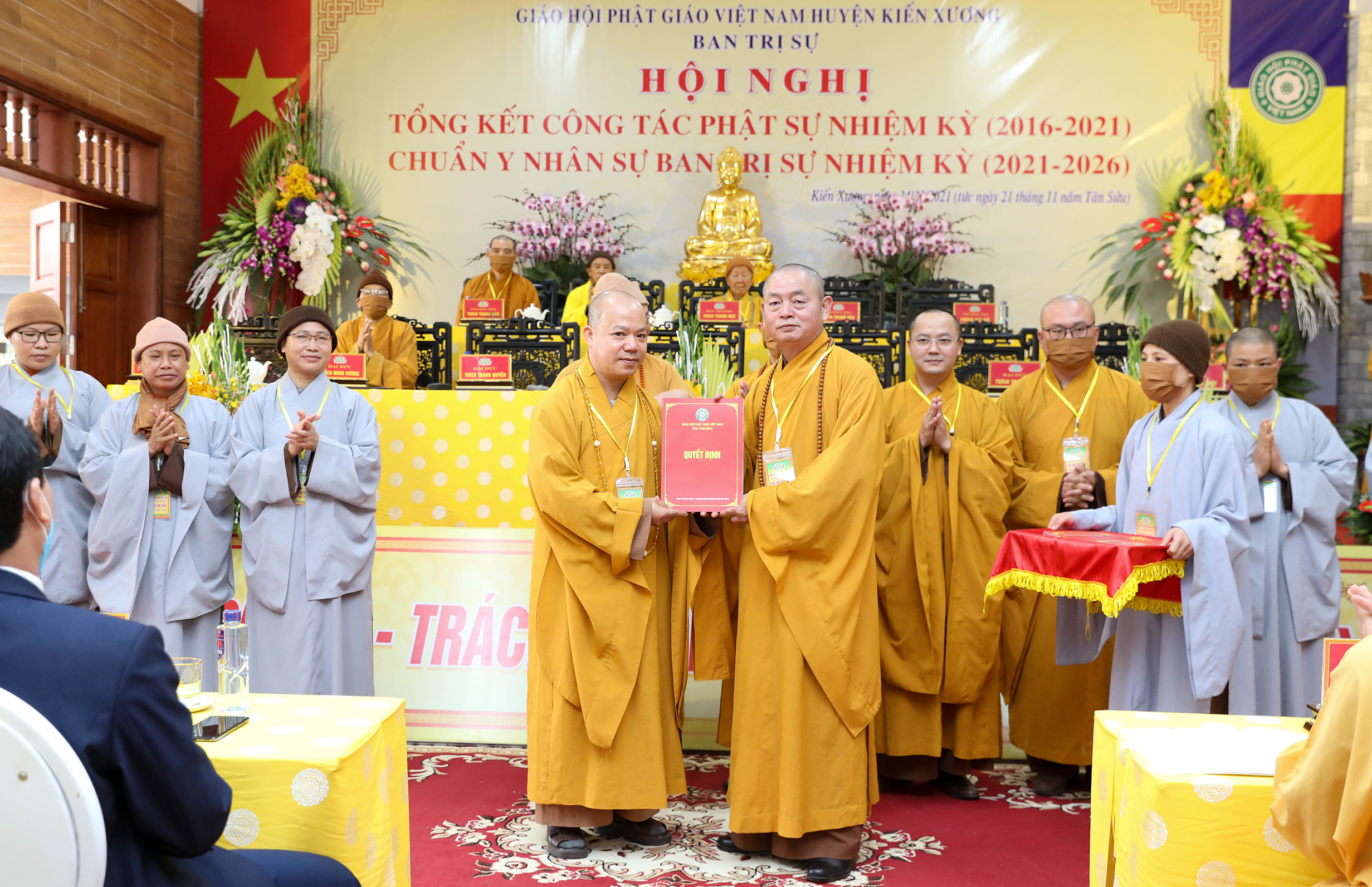 TT. Thích Thanh Hòa đã trao quyết định bổ nhiệm nhân sự tới 11 vị Tăng Ni của BTS Phật giáo huyện Kiến Xương nhiệm kỳ 2021 -2026 trước sự chứng minh của Chư Tôn đức và chúng kiến của toàn thể Đại hội. Tân Ban trị sự đã ra mắt đại hội.