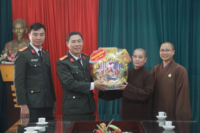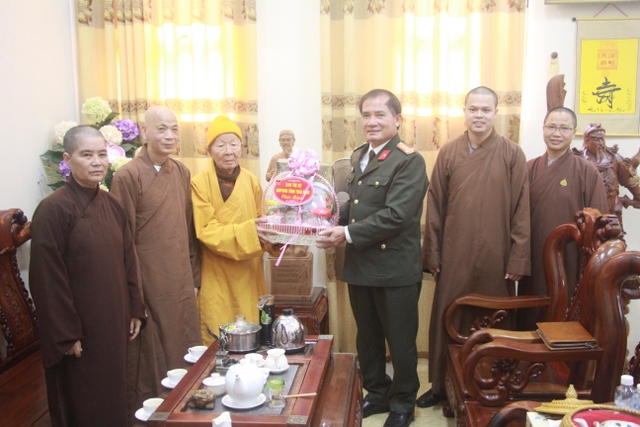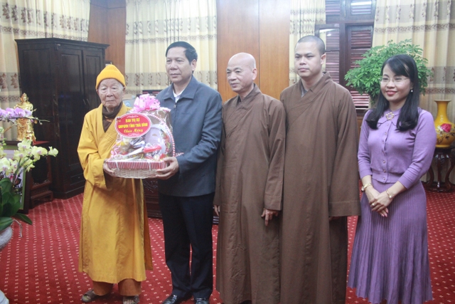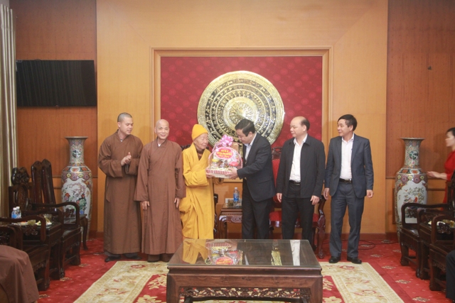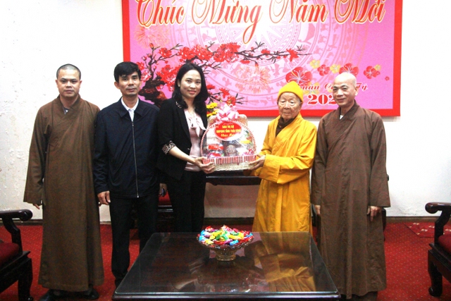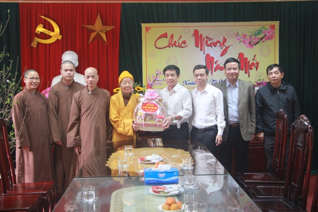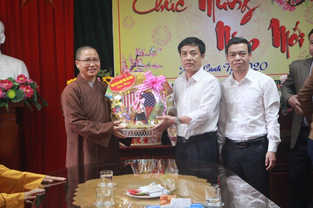 Tặng quà chúc Tết ông Vũ Mạnh Hiền - Tỉnh ủy viên, Phó Chủ tịch HĐND tỉnhQuý vị lãnh đạo cũng thông báo tóm lược tới chư Tôn đức tình hình kinh tế – xã hội tỉnh nhà trong năm 2019 vừa qua và nhiệm vụ sắp tới, đánh giá cao những đóng góp của Phật giáo tỉnh nhà trong xây dựng khối đại đoàn kết toàn dân, giữ gìn an ninh trật tự và phát triển kinh tế; kính chúc chư tôn đức Tăng Ni, tín đồ Phật tử sang năm mới an lành, hạnh phúc, hoàn thành các Phật sự, đón xuân Canh Tý an toàn, tiết kiệm, chung tay giữ gìn an ninh trật tự tại địa phương.