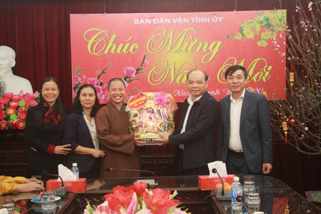 Phân ban Ni giới tỉnh chúc Tết ban Dân vận Tỉnh ủyPhái đoàn BTS PG tỉnh thăm và chúc Tết các cơ quan tỉnh có: HT. Thích Thanh Dục - Ủy viên Thường trực HĐCM, Chứng minh BTS tỉnh; TT. Thích Thanh Định - Ủy viên HĐTS, Phó ban Thường trực; ĐĐ. Thích Thanh Ân - Chánh Thư ký. Đoàn đã đến trụ sở các cơ quan, ban, ngành tỉnh Thái Bình: Văn phòng Tỉnh ủy, Ban Dân vận Tỉnh ủy, UBND tỉnh, HĐND tỉnh, một số sở ban ngành của tỉnh để thăm và chúc Tết lãnh đạo các cơ quan trước thềm năm mới.