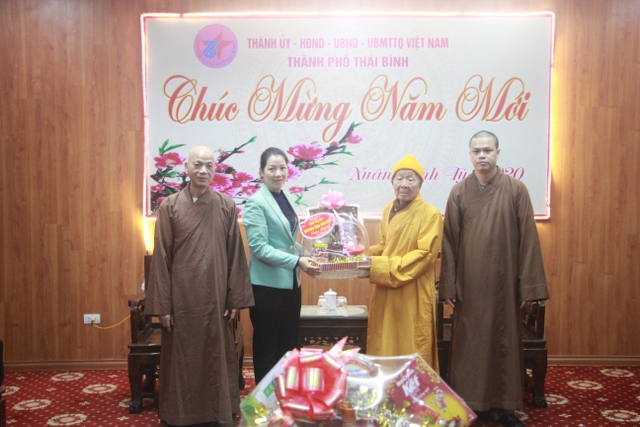 Chư Tôn đức tặng quà chúc Tết UBND TP.Thái Bình