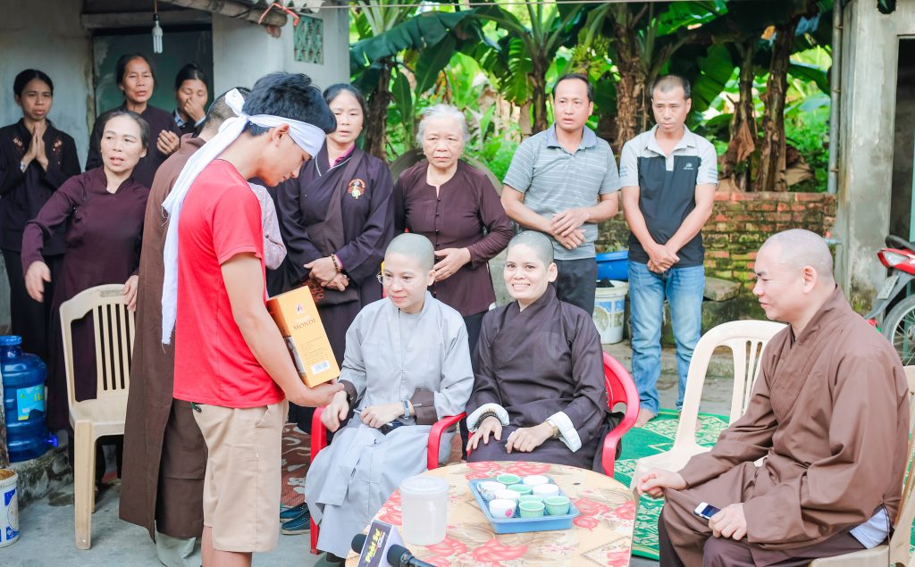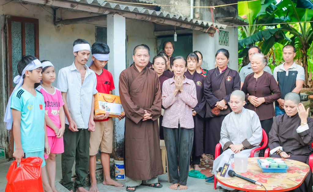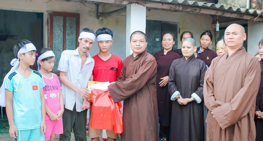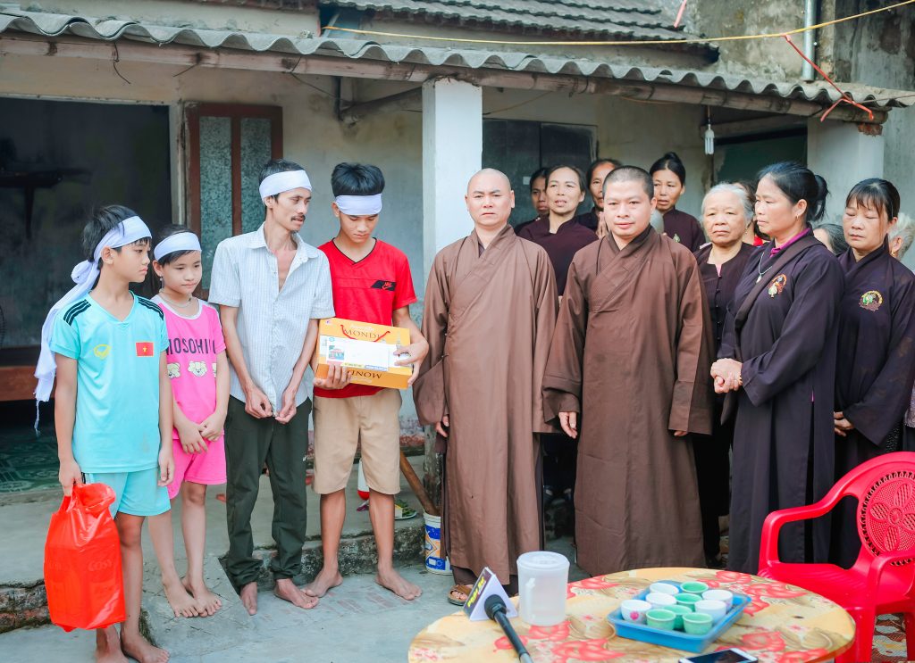 Đoàn từ thiện do ĐĐ. Thích Thanh Mẫn - Ủy viên BTS GHPGVN tỉnh Thái Bình, Trưởng ban TTXH Phật giáo Thái Bình, Trưởng Ban Trị sự GHPGVN huyện Quỳnh Phụ; ĐĐ. Thích Chung Chánh - Phó thư ký kiêm Chánh văn phòng BTS GHPGVN tỉnh Bến Tre, Chủ nhiệm câu lạc bộ Heo Công Đức quận 3, TP.HCM, trụ xứ chùa Kim Tôn huyện Quỳnh Phụ, cùng quý chư Tôn đức và các Phật tử chùa Thanh Mai, các nhà hảo tâm nhóm từ thiện chị Đào Thị Trang, nhóm từ thiện chị Đào Thị Huệ đã đến gia đình anh Hậu thăm hỏi động viên và trao tặng số tiền hơn 22 triệu đồng, để hỗ trợ cho anh có thêm phần kinh phí chữa bệnh và lo cho các con ăn học.