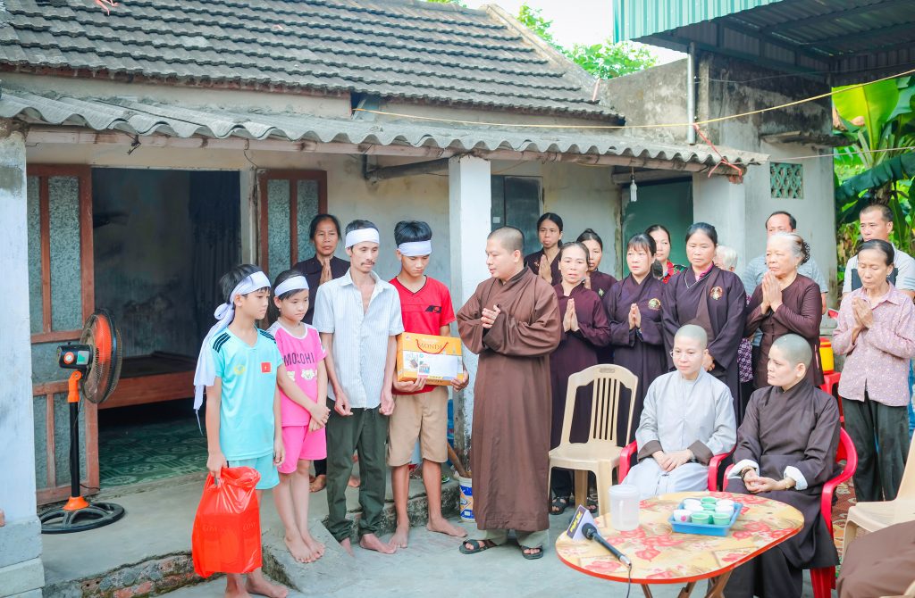 ĐĐ. Thích Chung Chánh cũng đã trao quà và động viên gia đình, Đại đức cũng muốn hỗ trợ gia đình anh Hậu lo phần học phí cho các em đến khi học xong phổ thông trung học.