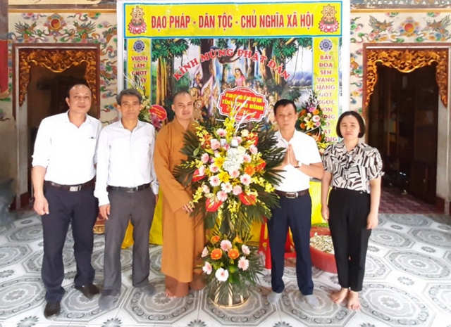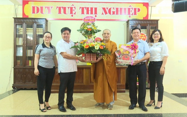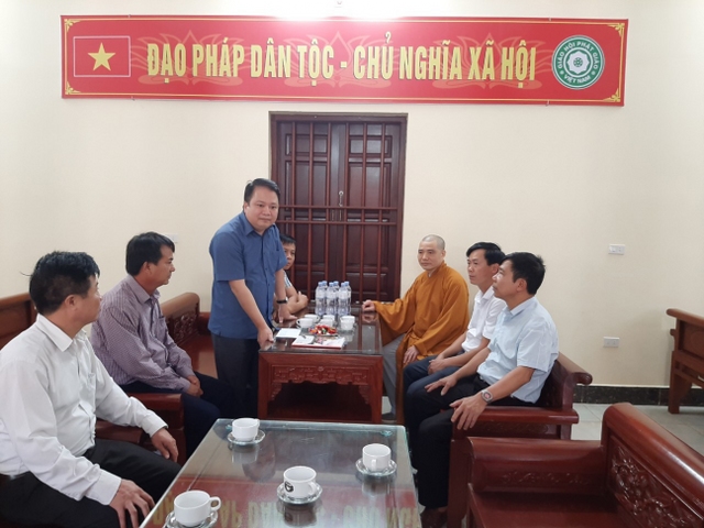 Ông Nguyễn Quang Minh thay mặt sở Nội vụ thăm hỏi và chúc mừng Phật đản tới Tăng Ni huyện Tiền Hải