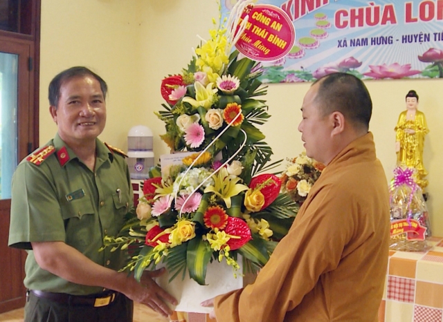 Đại tá Phạm Đình Tâm - Phó Giám đốc Công an tỉnh tặng hoa chúc mừng ĐĐ.Thích Minh Thái