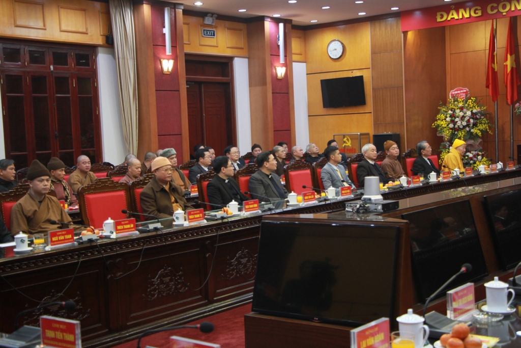 Toàn cảnh Hội nghị do Tỉnh ủy tỉnh Thái Bình tổ chứcTham dự có ông Ngô Đông Hải - Uỷ viên dự khuyết TƯ Đảng, Bí thư Tỉnh ủy; ông Nguyễn Tiến Thành - Phó Bí thư Thường trực Tỉnh ủy Chủ tịch HĐND tỉnh; ông Nguyễn Khắc Thận - Phó Bí thư Tỉnh ủy, Chủ tịch UBND tỉnh; đại diện lãnh ban Dân vận Tỉnh ủy, Uỷ ban MTTQVN tỉnh, Công an tỉnh, đại diện một số sở, ban ngành của tỉnh về dự buổi gặp mặt. Trưởng lão HT.Thích Thanh Dục - Ủy viên Thường trực HĐCM, Chứng minh Ban Trị sự GHPGVN tỉnh, đại diện chư Tôn đức, Tòa Giám mục Giáo phận Thái Bình, Hội Thánh tin lành Thái Bình cùng về dự.
