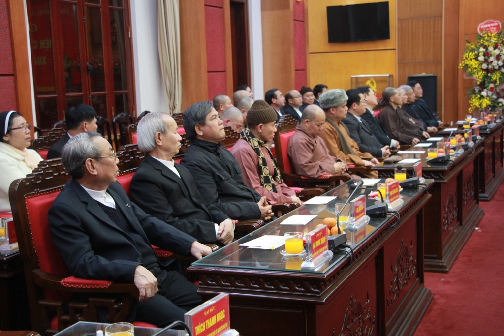 Đại diện các sở, ban, ngành của tỉnhĐại diện các chức sắc tôn giáo trên địa bàn tỉnh phát biểu bày tỏ sự vui mừng trước sự phát triển kinh tế - xã hội của tỉnh, đồng thời khẳng định tín đồ các tôn giáo trong tỉnh luôn chấp hành tốt đường lối, chủ trương của Đảng, chính sách, pháp luật Nhà nước và quy định của địa phương, góp phần xây dựng quê hương Thái Bình ngày càng giàu đẹp, văn minh.