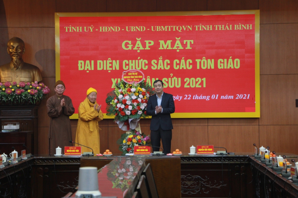 Các đại biểu dự Hội nghị gặp mặt các tôn giáo do Tỉnh ủy Thái Bình tổ chứcÔng Bí thư Tỉnh ủy nhấn mạnh: Có được kết quả trên là do sự cố gắng, nỗ lực của toàn hệ thống chính trị và người dân trong tỉnh, trong đó có sự đóng góp quan trọng và tích cực của các vị chức sắc các tôn giáo, các tín đồ Phật tử và giáo dân. Ông khẳng định, tỉnh sẽ tạo điều kiện thuận lợi nhất cho các tổ chức và công dân có các hoạt động đầu tư trên địa bàn tỉnh.