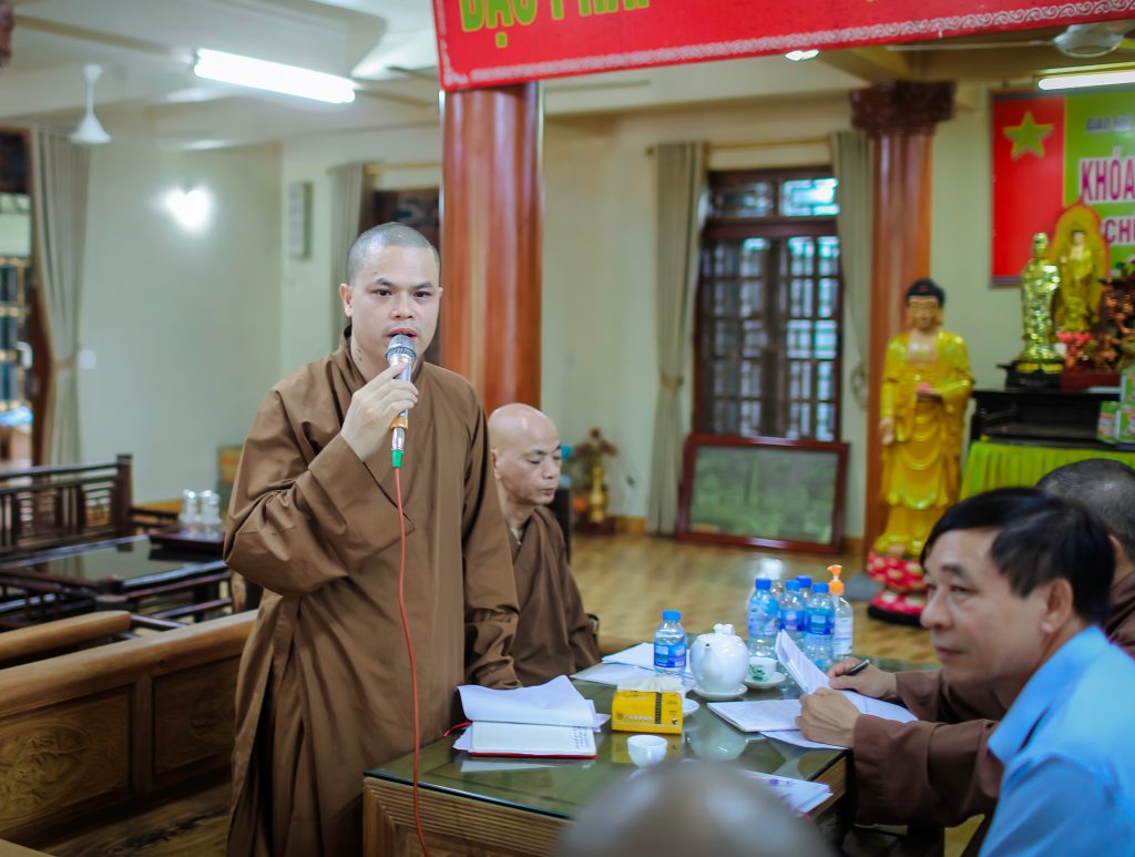 ĐĐ. Thích Thanh Ân - Chánh thư ký BTS kiêm Trưởng ban tài chính Phật giáo tỉnh phát biểu