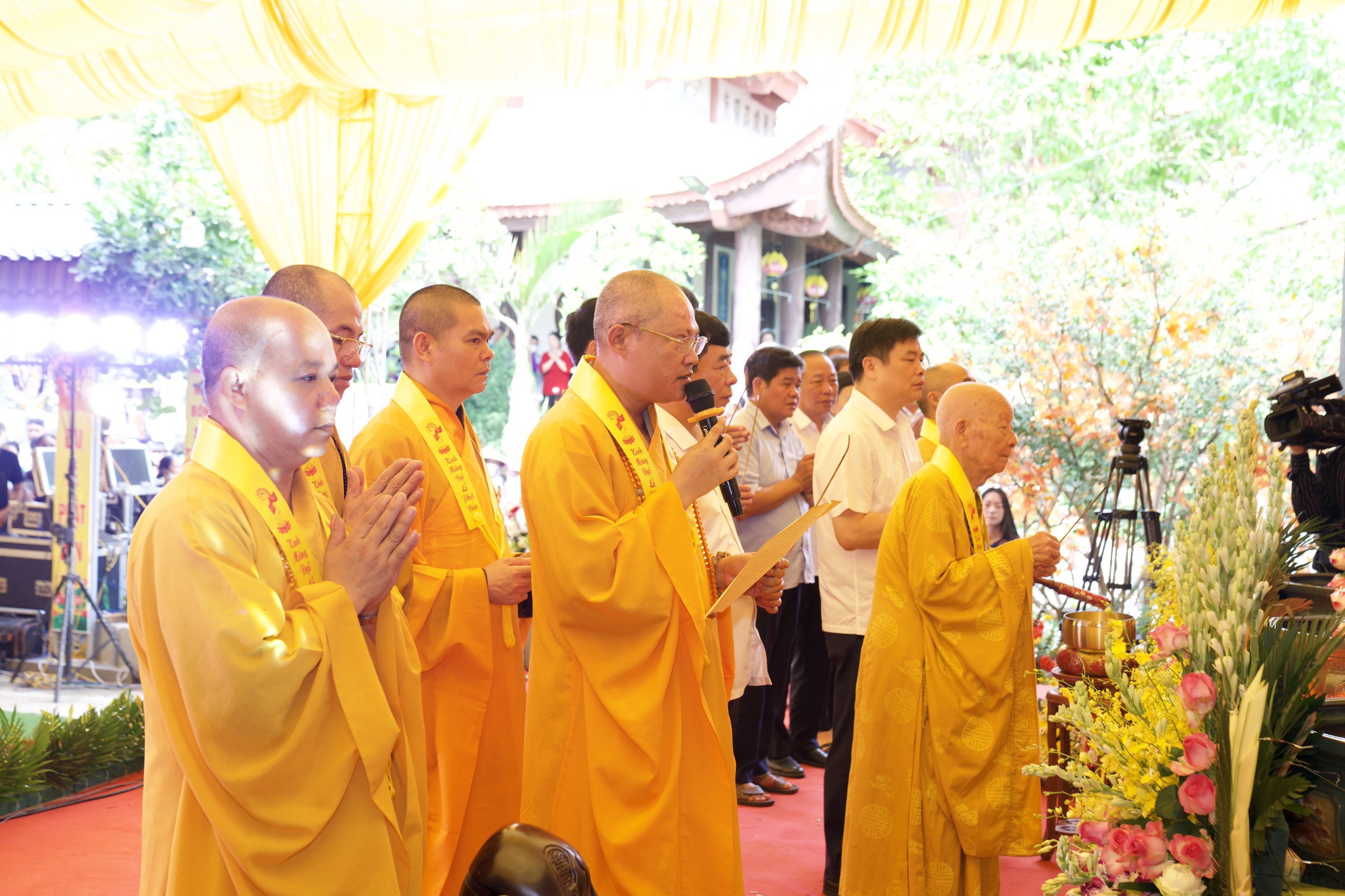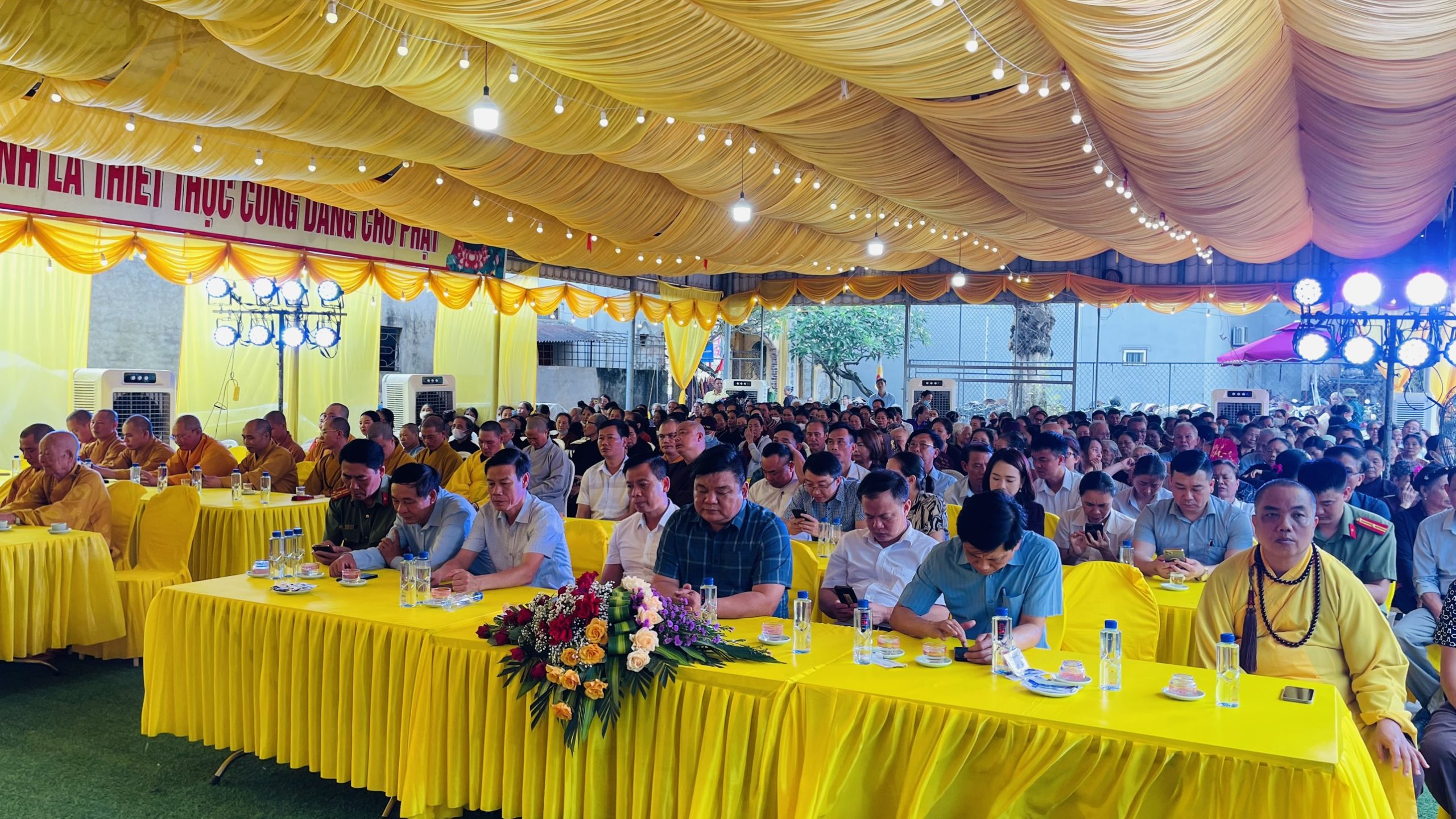 Hòa chung niềm hân hoan đó, từ những ngày trung tuần tháng 3 âm lịch, chư Tăng Ni và nhân dân Phật tử tại các chùa đã nô nức rộn ràng treo cờ, kết hoa, làm xe hoa diễu hành, thiết trí lễ đài trang nghiêm cảnh tự để chào mừng cho ngày đại lễ kính mừng ngày đản sinh lần thứ 2647 của Đức Thế Tôn.
