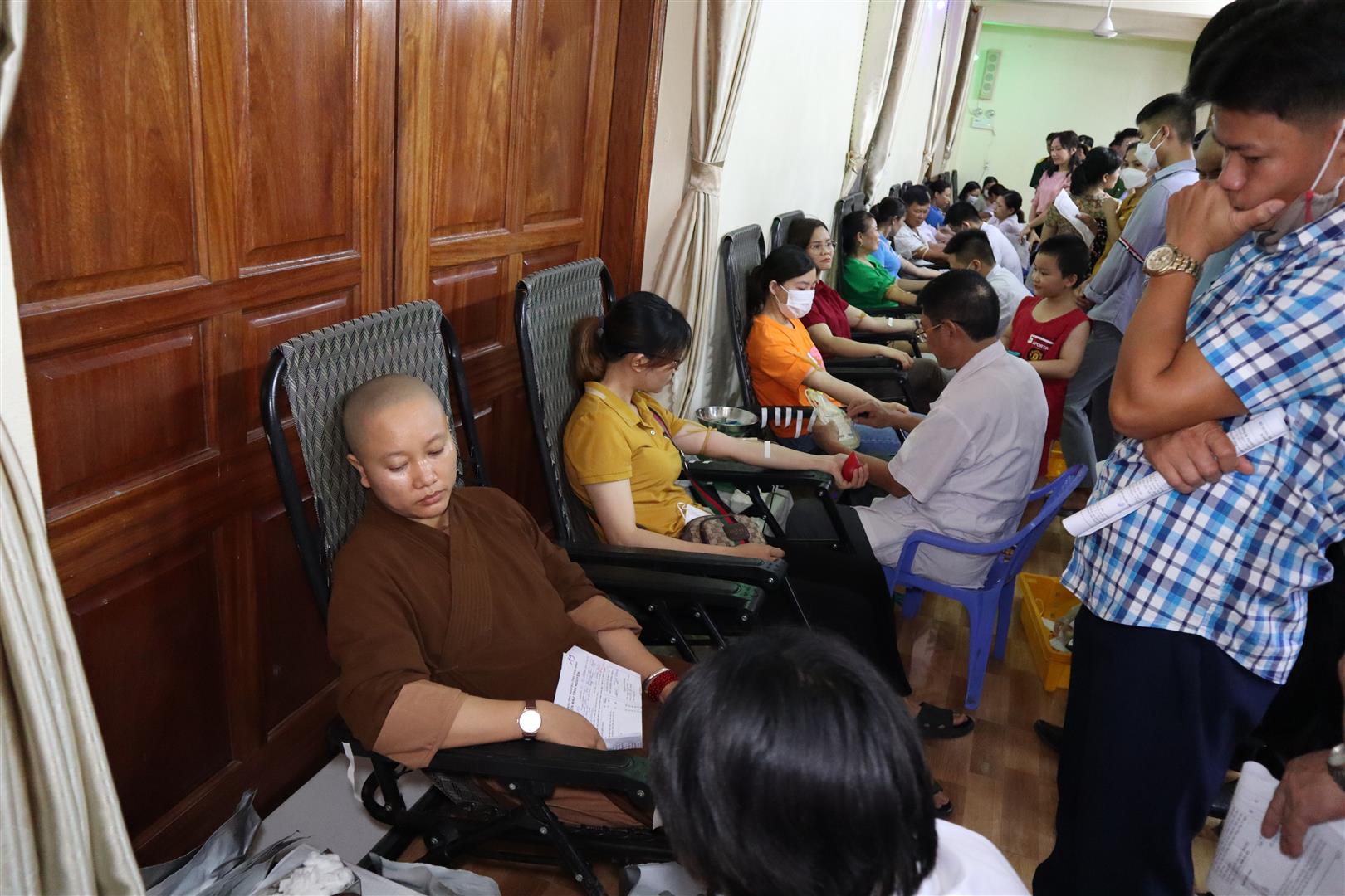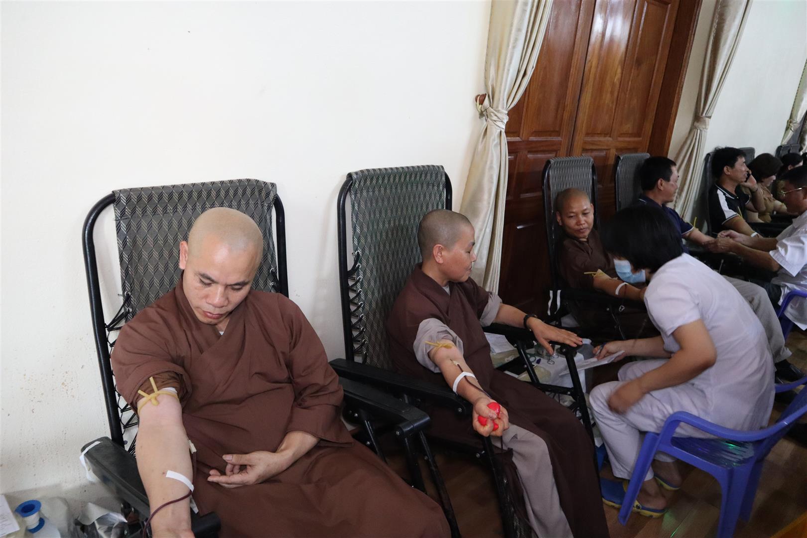 Do ảnh ưởng của đại dịch covid trong 2 năm vừa qua mà số lượng máu lưu trữ tại các cơ sở y tế đang bị thiếu hụt và gặp không ít khó khăn trong công tác huy động người hiến máu, dẫn đến khan hiếm lượng máu dự trữ trầm trọng. Hiểu được mối nguy về thiếu hụt máu đe dọa sự sống của người bệnh, mặc dù đang trong thời gian an cư kết hạ, nhưng chư Tăng, Ni vẫn bớt chút thời gian, với tấm lòng từ bi và tinh thần tràn đầy nhiệt huyết, quý Tăng Ni trẻ đã hăng hái tham gia đăng ký hiến máu nhân đạo. Chương trình hiến máu năm nay còn được sự hưởng ứng của đông đảo các tầng lớp nhân dân.