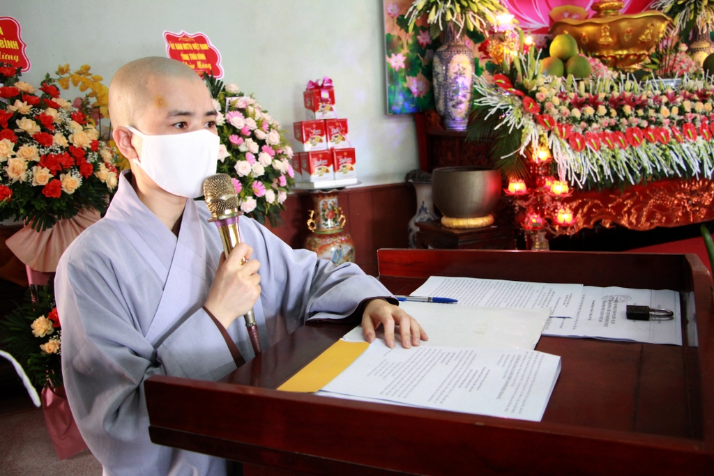 Tại buổi lễ, sau nghi thức niệm Phật cầu gia bị khai mạc Đại lễ. TT. Thích Thanh Hòa đã thay mặt cho chư Tôn đức tuyên đọc “Thông điệp của Đức Pháp chủ HĐCM GHPGVN gửi Tăng, Ni, cư sĩ Phật tử Việt Nam nhân dịp Đại lễ Phật đản PL.2565 - DL.2021”. Đức Pháp chủ tán thán công đức của Tăng Ni, Phật tử nước nhà đã đoàn kết cùng cả dân tộc trong việc phòng chống dịch, đặc biệt là chấp hành nghiêm chỉnh việc cấm túc tại chùa để tụng kinh cầu nguyện quốc thái dân an, thực hiện cách ly xã hội, cùng nhiều hoạt động từ thiện ích đạo – lợi đời. Thông điệp nhắn nhủ: “Đại dịch COVID -19 đã khiến cả thế giới nhận ra rằng chúng ta cần sát cánh bên nhau và phải cùng nhau hành động vì mục tiêu và lợi ích chung. Các nước cần phải ngồi lại với nhau, hợp tác tìm giải pháp cho vấn đề biến đổi khí hậu toàn cầu, chia sẻ bình đẳng trong việc tiếp cận vắc-xin phòng, chống dịch COVID -19, không có sự phân biệt. Mọi người phải nêu cao sự đồng thuận, đoàn kết chung tay cùng Chính phủ và toàn xã hội vượt qua đại dịch, ổn định đời sống, và phát triển đất nước”.