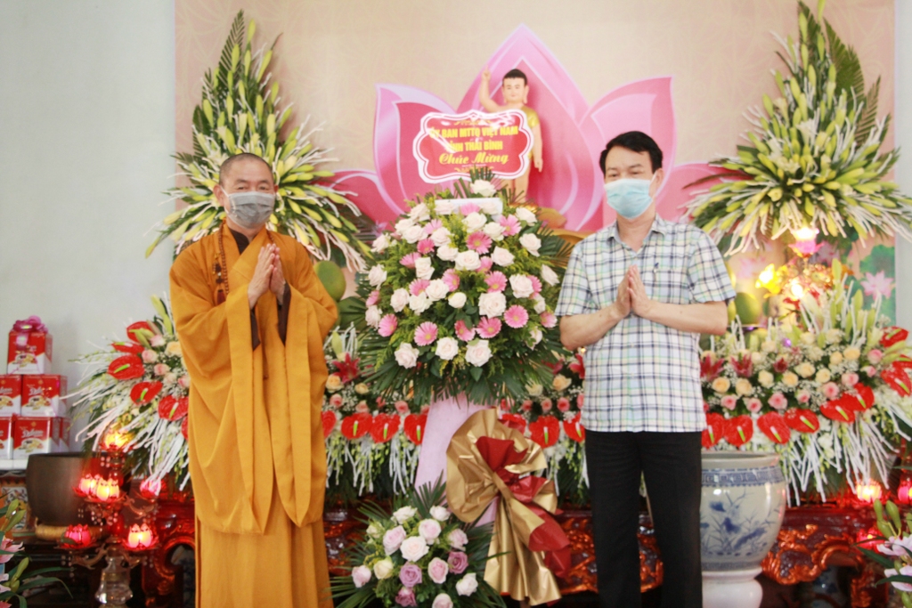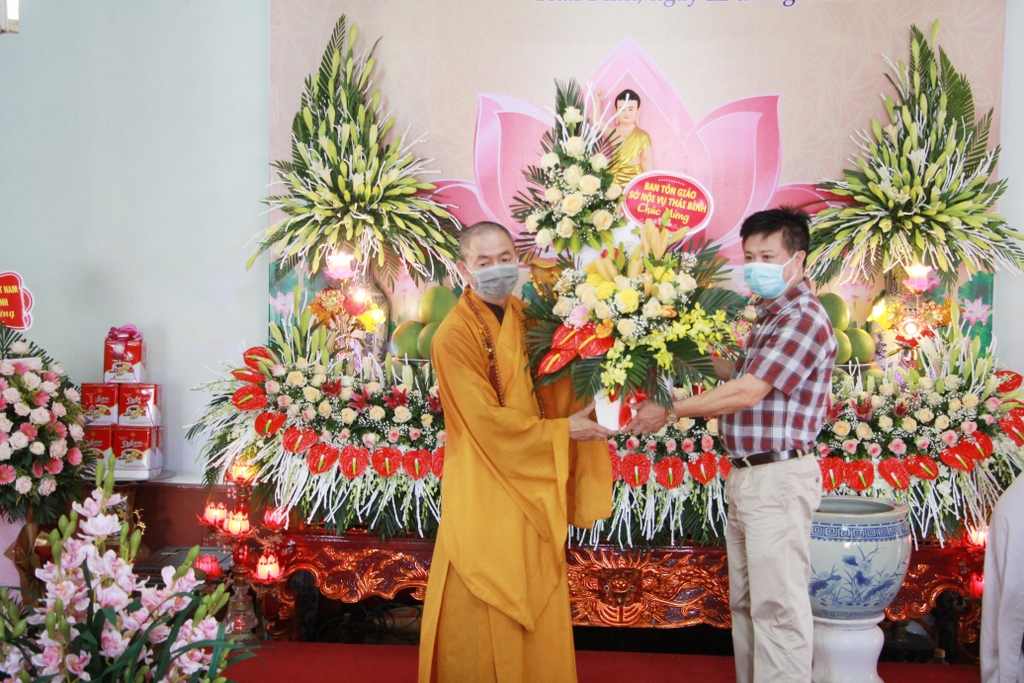 Dịp này, Ban Trị sự GHPGVN tỉnh đón nhận lẵng hoa chúc mừng của lãnh đạo ban Dân vận Tỉnh ủy, Uỷ ban MTTQ Việt Nam tỉnh, Công an tỉnh, ban Tôn giáo (sở Nội vụ) chúc mừng Đại lễ Phật Đản PL.2565.