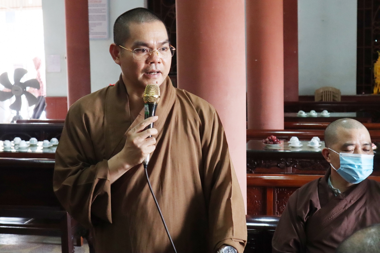 Thượng tọa Thích Trí Sử - Trưởng Ban Trị sự PG thành phố phát biểu ý kiến