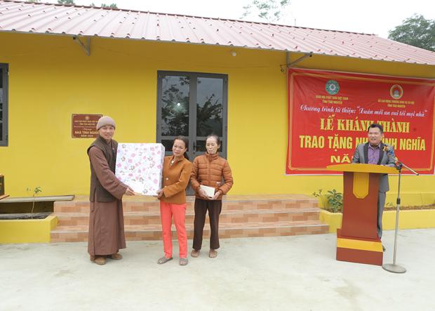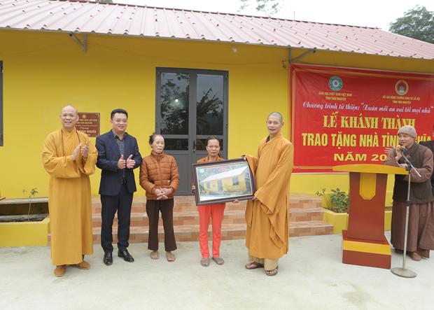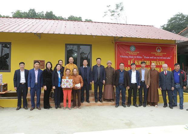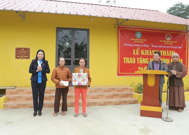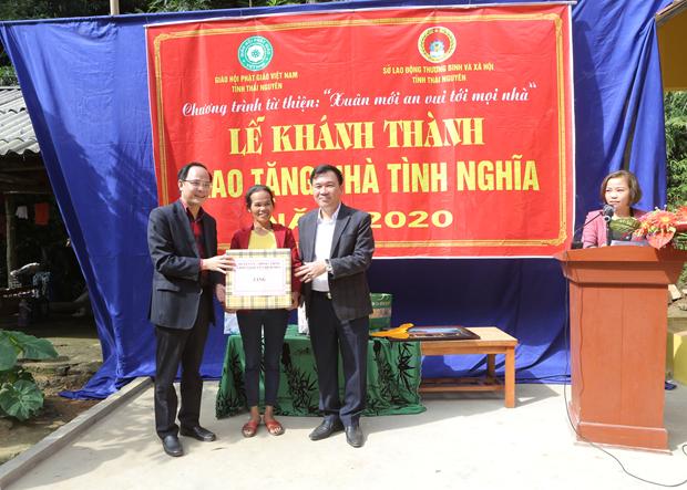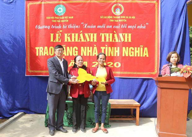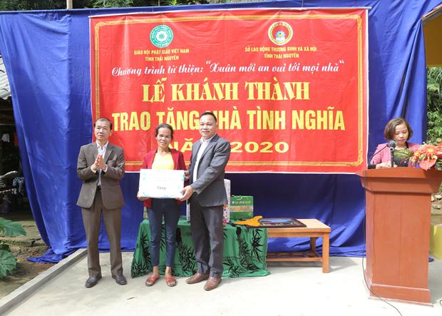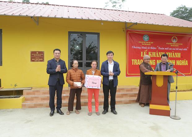 Thực hiện chương trình “ xuân mới an vui tới mọi nhà” Ban trị sự GHPGVN Tỉnh Thái Nguyên đã vận động chư Tăng ni, Phật tử, quý doanh nghiệp, các nhà tài trợ đã xây dựng 10 căn nhà tình nghĩa cho các hộ gia đình có hoàn cảnh đặc biệt khó khăn trên địa bàn tỉnh, với tổng kinh phí xây dựng 880 triệu đồng.