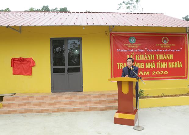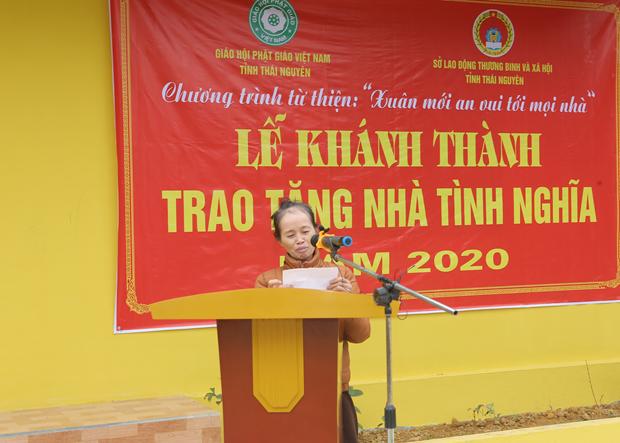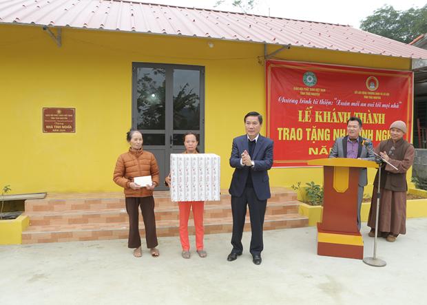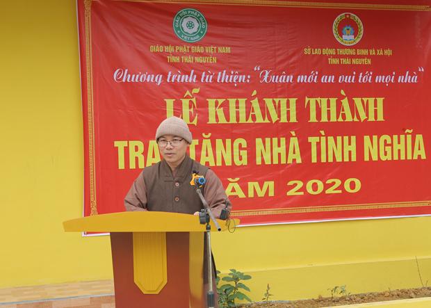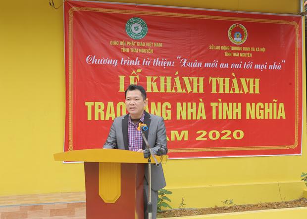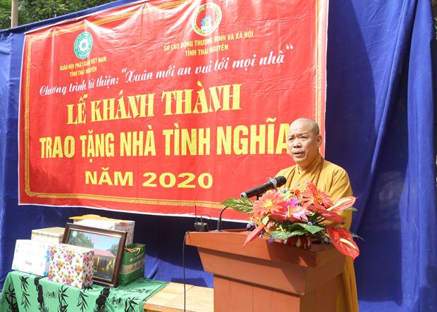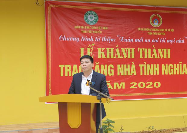Phát biểu tại buổi lễ Ông Vũ Hồng Bắc – Chủ tịch UBND Tỉnh bày tỏ sự cảm ơn đối với Ban Trị sự GHPGVN tỉnh Thái Nguyên và các mạnh thường quân đã cùng chung tay với các cấp chính quyền địa phương có những giúp đỡ thiết thực về nhà ở cho các hộ gia đình có hoàn cảnh khó khăn. Đây là hoạt động thiện nguyện nhân văn cao đẹp thể hiện thần tương thân tương ái lá lành đùm lá rách của dân tộc ta. Và động viên gia đình sau khi được hỗ trợ nhà ở sớm ổn định cuộc sống, tích cực lao động, tăng gia sản xuất, phát triển kinh tế, từng bước vươn lên thoát nghèo.