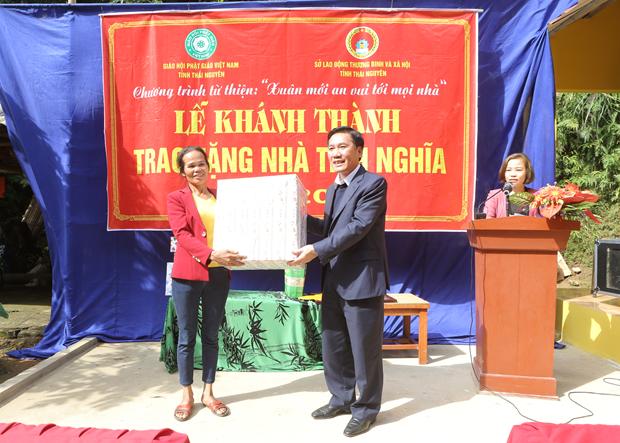 Nhân dịp này, Lãnh đạo UBND Tỉnh, Ban Trị sự, Sở Lao Động Thương Binh và Xã Hội Huyện Định Hóa cùng nhiều cá nhân, tập thể, doanh nghiệp đã trao tặng những phần quà động viên đến với hai hộ gia đình.