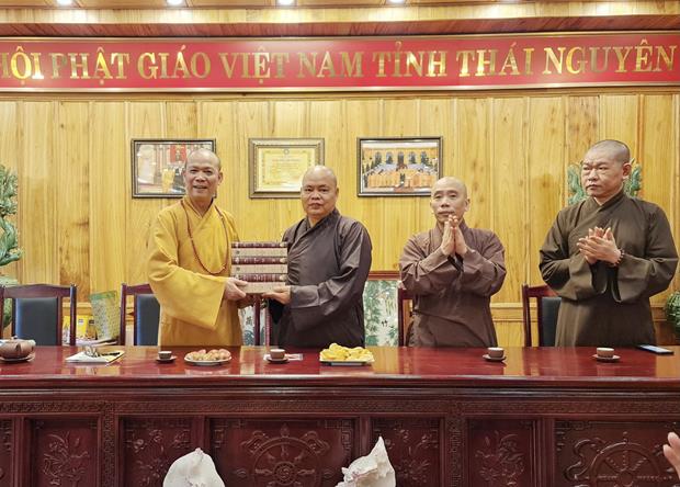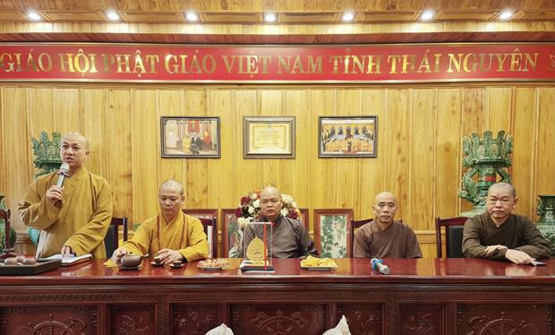 Tại hội nghị còn được nghe những lời chia sẻ chỉ đạo của TT.Thích Thanh Phong- UVTT HĐTS, Trưởng Ban Kinh tế Tài chính TƯ, Trụ trì Tổ đình Vĩnh Nghiêm TP. HCM nhân chuyến công tác tại miền Bắc cũng như tại tỉnh Thái Nguyên dịp này, TT đã chia sẻ nhiều vấn đề liên quan tới công tác Tăng sự cũng như các công tác Phật sự Từ thiện xã hội. Đồng thời, Thượng tọa tán thán thành tựu công tác Phật sự những năm qua đối với GHPGVN tỉnh Thái Nguyên. Nhân đây TT. Thích Thanh Phong cũng thay mặt chư Tôn Lãnh đạo Trung Ương GHPGVN trao tặng tới BTS tỉnh bộ Pháp bảo Tôn kinh, Đại tạng Kinh Việt Nam do Viện Nghiên cứu Phật học VN xuất bản và ấn hành.