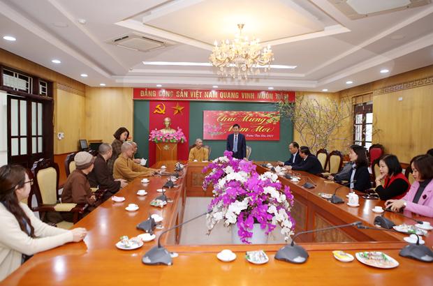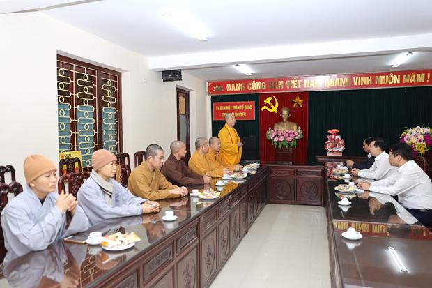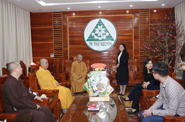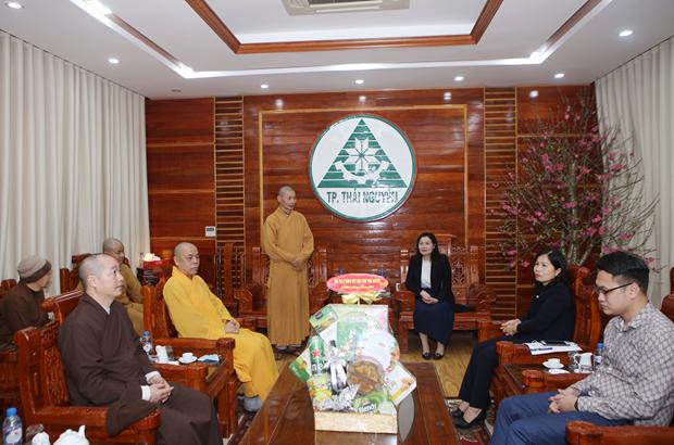 Cùng thời gian, Thượng tọa Trưởng ban Trị sự Phật giáo tỉnh Thái Nguyên chúc tết Lãnh đạo Tỉnh, phái đoàn do Đại đức thích Đạo Quảng- Phó Ban kiêm Chánh Thư ký BTS Phật giáo tỉnh làm trưởng đoàn chúc tết Ban Dân vận Tỉnh ủy và các Phòng ban của TP Thái Nguyên.