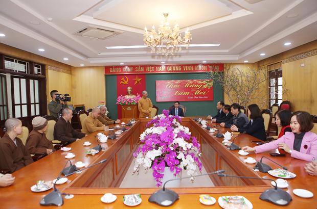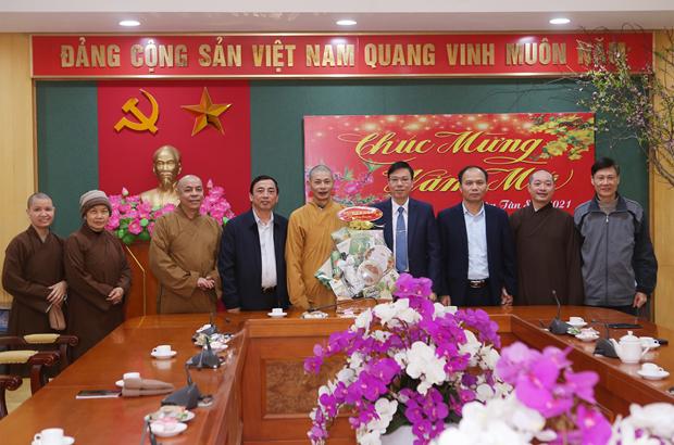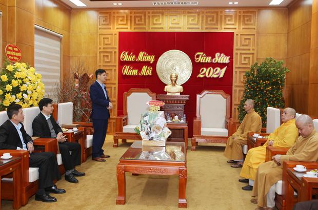 Dịp này, đại diện các cơ quan, ban, ngành đã thân mật đón tiếp đoàn và gửi lời chúc đến chư tôn Thượng tọa, Đại Đức lãnh đạo PG tỉnh cùng toàn thể Tăng, Ni trong địa bàn tỉnh luôn được khỏe mạnh, đón xuân an lạc và hoàn thành tốt các Phật sự trong năm 2021 và hứa sẽ tạo điều kiện giúp đỡ Phật giáo về cơ chế, chính sách để xây dựng Phật giáo tỉnh nhà ngày một phát triển.