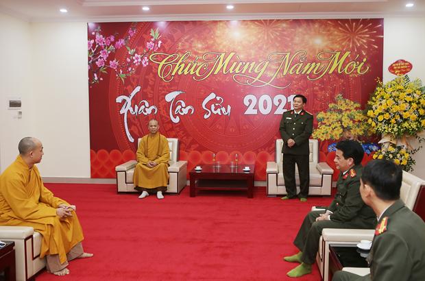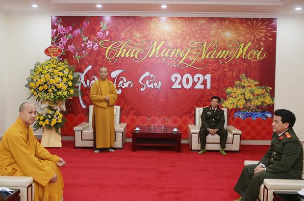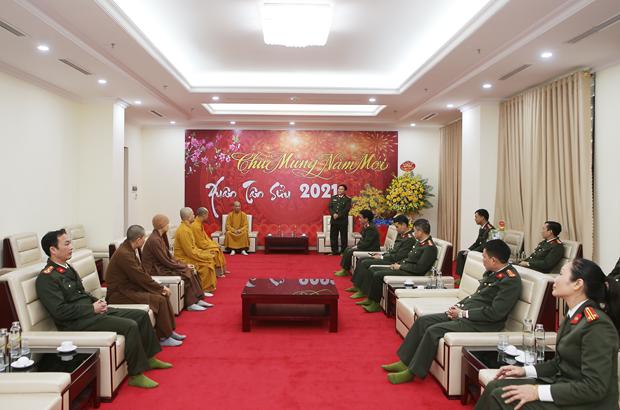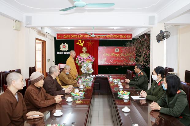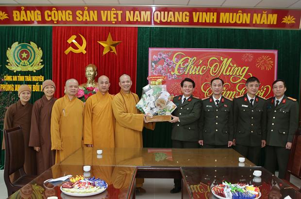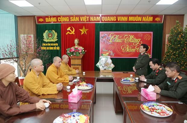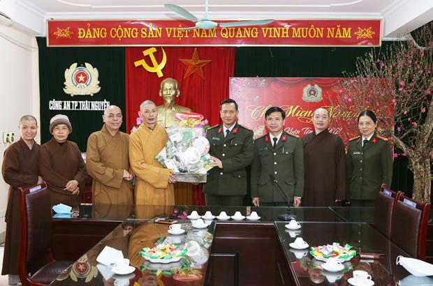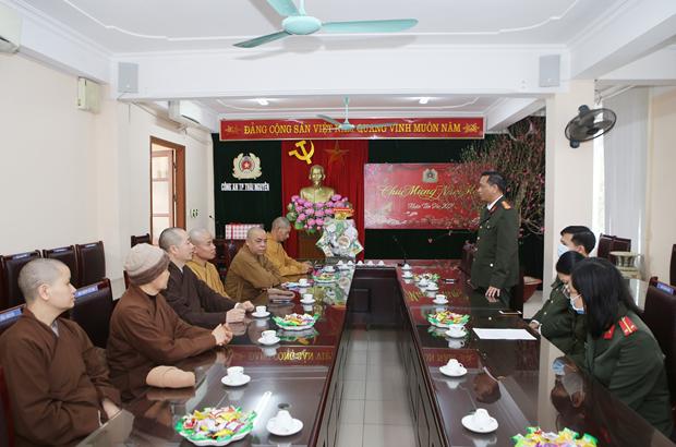 Chiều cùng ngày, Phái đoàn Thường trực BTS Phật giáo tỉnh gặp gỡ chúc mừng năm mới Xuân Tân sửu- 2021 tại Trụ sở Công an Tỉnh Thái Nguyên. Tiếp đón phái đoàn có ông Phó Giám đốc Công an tỉnh Đại tá Nguyễn Văn Thực.