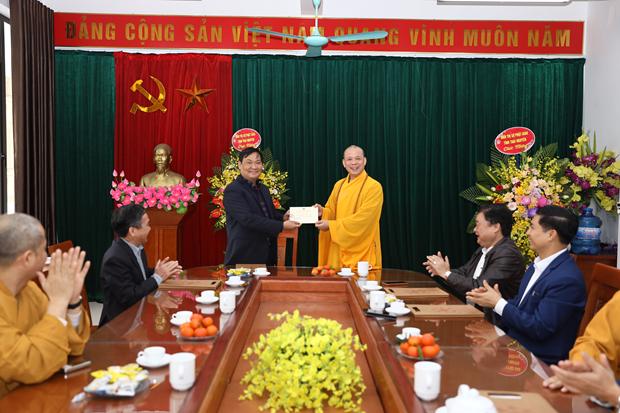 Thừa sự ủy quyền của Thượng tọa Trưởng Ban Trị sự Đại đức Thích Chúc Tiếp, Phó Ban kiêm Chánh VP Ban Trị sự làm trưởng đoàn đến thăm hỏi chúc tết Ban Tuyên giáo Tỉnh.