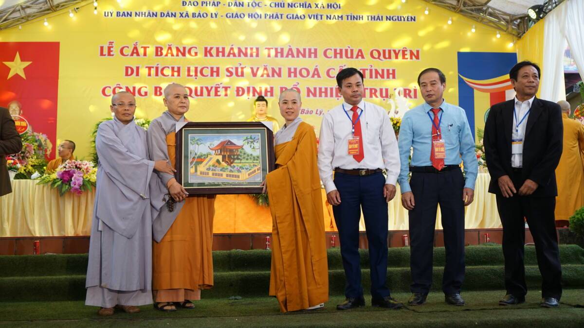 Đại diện chính quyền có ông Lê Ngọc Linh, Phó giám đốc Sở VHTT và DL tỉnh; ông Nguyễn Văn Hưởng – Trưởng phòng An ninh Nội địa Công an tỉnh; ông Nguyễn Tiến Dũng - Phó trưởng ban Tôn giáo tỉnh; ông Nguyễn Minh Tuấn – Phó chủ tịch UBND huyện Phú Bình cùng lãnh đạo chính quyền các cấp HĐND, UBND, MTTQ huyện; lãnh đạo chính quyền xã Bảo Lý và gần 1000 tín đồ Phật tử tham dự.