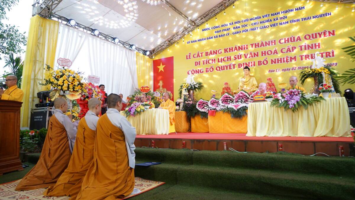 PSO - Sáng ngày 2/4/2023, tại chùa Quyên Linh (xã Bảo Lý, huyện Phú Bình, tỉnh Thái Nguyên) đã diễn ra Lễ bổ nhiệm trụ trì và khánh thành ngôi bảo điện chùa Quyên Linh.
