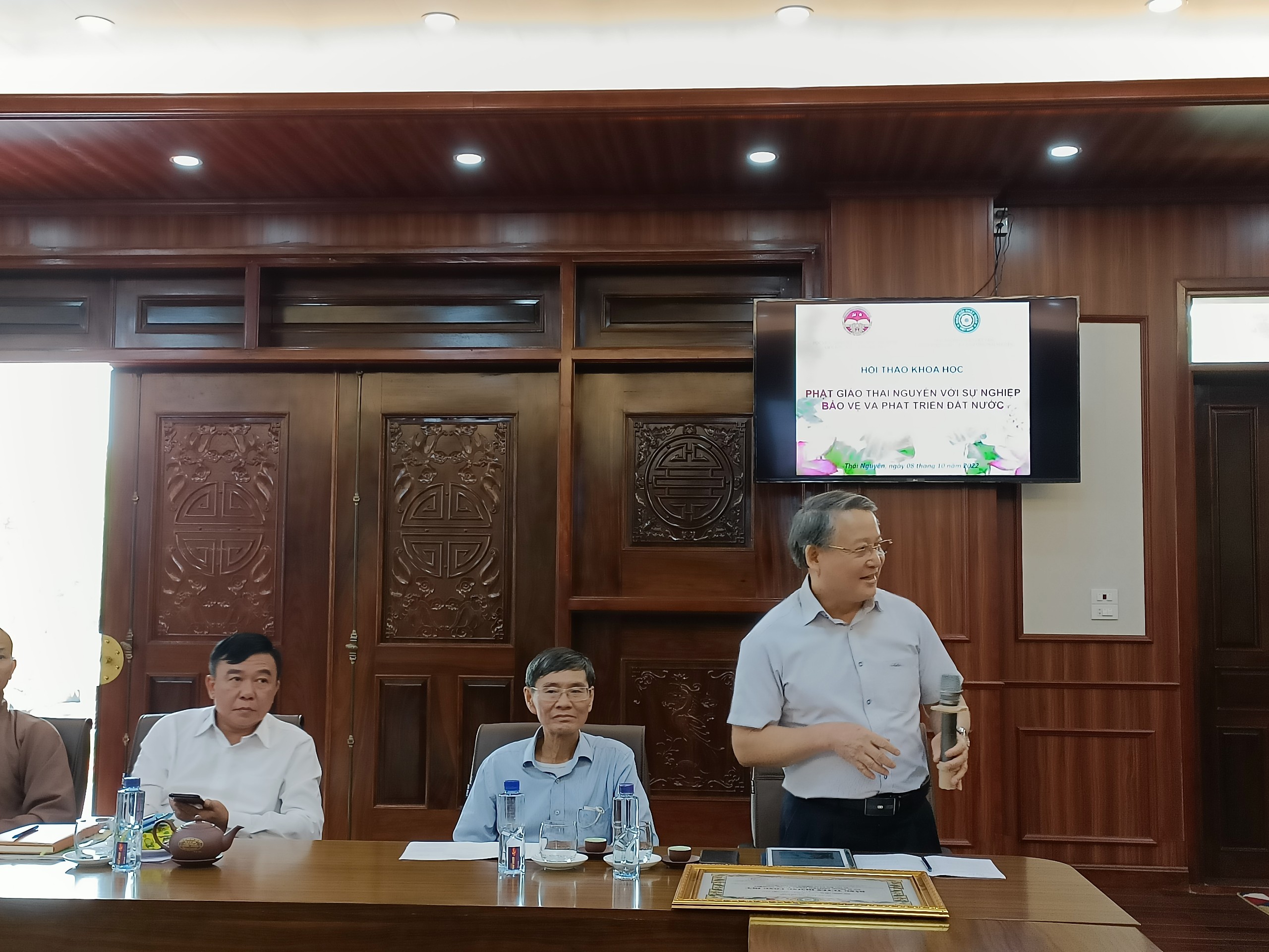 Báo cáo tại phiên họp Tiến sĩ Bùi Hữu Dược - Giảng viên cao cấp tại Học viện Chính trị Quốc gia Hồ Chí Minh cho biết: Hội thảo khoa học “Phật giáo Thái Nguyên với sự nghiệp bảo vệ và phát triển đất nước” sẽ là một hội thảo mang tầm quốc gia, có ảnh hưởng sâu rộng không chỉ trong giới nghiên cứu khoa học mà còn ảnh hưởng tích cực đến giới tu sĩ, quần chúng phật giáo trong cả nước. Hội thảo sẽ mời nhiều nhà khoa học, học giả uyên thâm về đạo phật, các cơ quan quản lý nhà nước về tôn giáo từ trung ương và địa phương để từ đó sẽ có cách nhìn tổng thể về những giá trị mà Phật giáo Thái Nguyên nói riêng và Phật giáo cả nước nói chung đã cống hiến và mang lại trong sự nghiệp bảo vệ và phát triển đất nước.