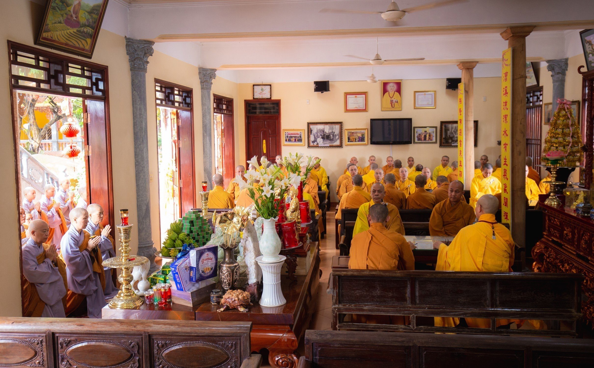 Mở đầu buổi lễ, chư Tôn giáo phẩm đã niêm hương đảnh lễ Tam bảo, chư vị Tổ sư, chư Tăng, Ni tuần tự theo hạ lạp vân tập chánh điện cử hành nghi thức thọ pháp an cư theo truyền thống.