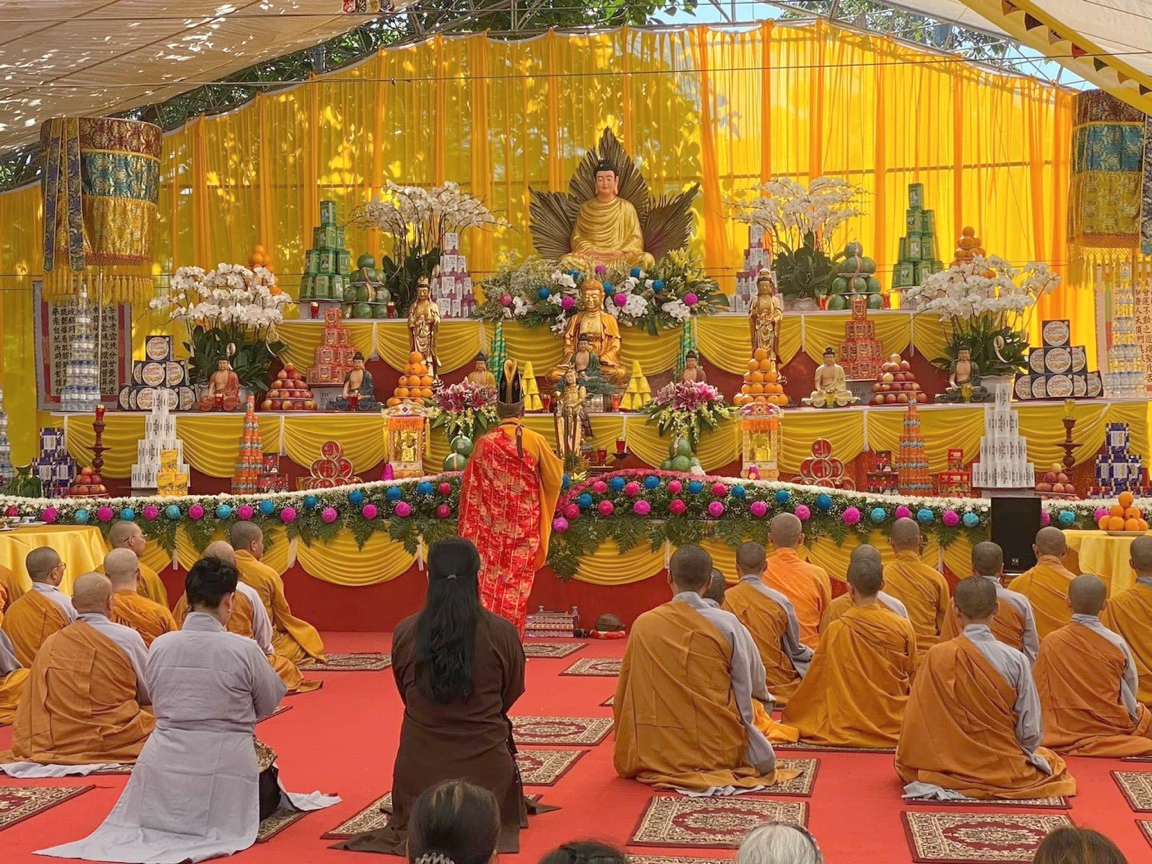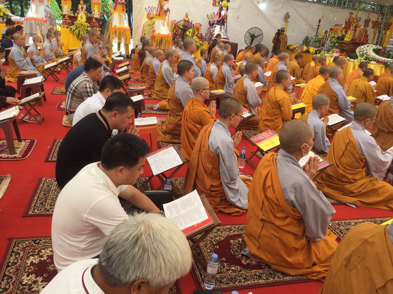 Đàn tràng dưới sự chứng minh của HT. Thích Đạo Quang, Phó trưởng ban Thường trực BTS GHPGVN tỉnh Quảng Ninh, Viện chủ tổ đình Quỳnh Lâm, Trưởng ban tổ chức chương trình Đại lễ; TT. Thích Nguyên Thành - UVTT HĐTS, Trưởng Ban Trị sự GHPGVN tỉnh Thái Nguyên cùng sự tham dự của chư Tăng Ni tổ đình Quỳnh Lâm, chư Tăng Ni trường hạ tổ đình Phù Liễn (Thái Nguyên), chư Tăng Ni tổ đình Long Hưng (Hà Nội) và quý cấp lãnh đạo, chính quyền cùng thân nhân của các Anh hùng liệt sỹ.