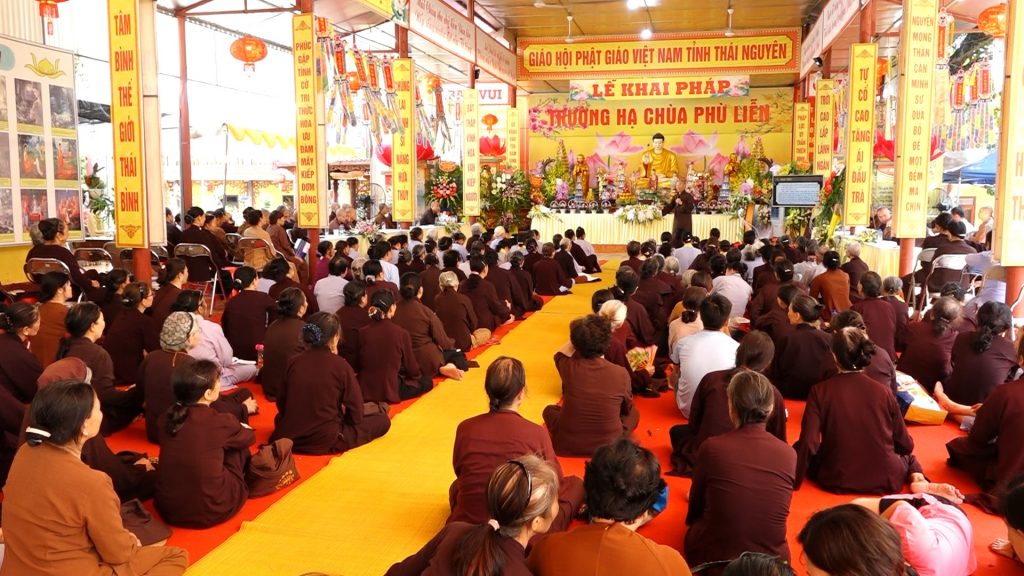 Tham dự buổi giảng có sự hiện diện của chư Tôn đức hành giả An cư kiết hạ cùng với đông đảo Phật tử đồng về tham dự.