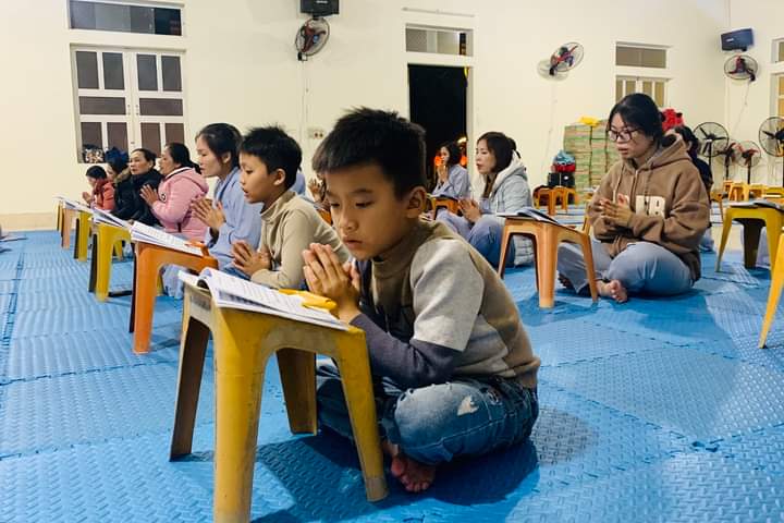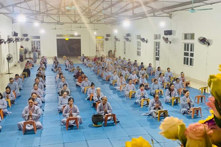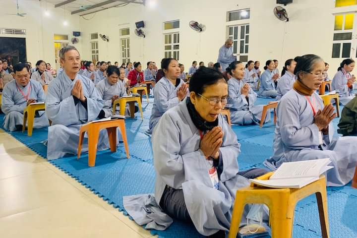 Sau khi các hành giả vân tập về giảng đường Hoa Sen, Phật tử Liên Thanh - Phó trưởng đạo tràng Yên Pháp đã đọc lại nội quy sinh hoạt cho đại chúng có mặt. Sau đó, Đại đức Thích Tâm Hưng trụ trì chùa Đống Cao, cùng Đại đức Thích Tâm Nghiên chư Tăng tổ đình Hoằng Pháp (TP.HCM_ đã quang lâm giảng đường hướng dẫn đại chúng đọc tụng kinh chú làm mới ba nghiệp và ôn lại Tam Quy Ngũ Giới của người Phật tử tại gia.