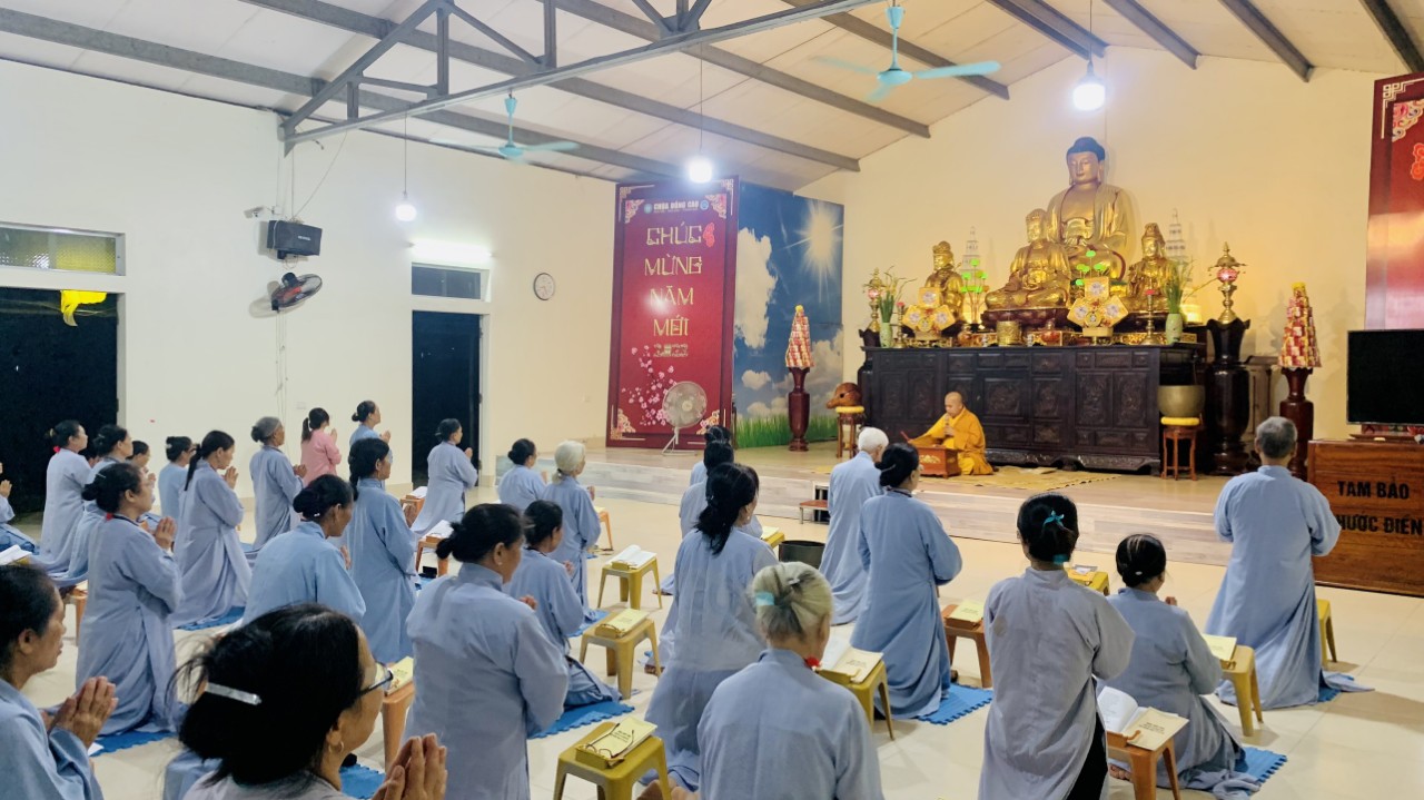 Tối ngày 17/07/2023 (nhằm ngày 30/05/Quý Mão), mặc dù nắng nóng nhưng quý Phật tử xa gần đã vân tập về giảng đường Ngộ Chân Tử - Chùa Đống Cao (xã Nga Yên, huyện Nga Sơn, Thanh Hóa) tham dự buổi cộng tu sám hối định kỳ.