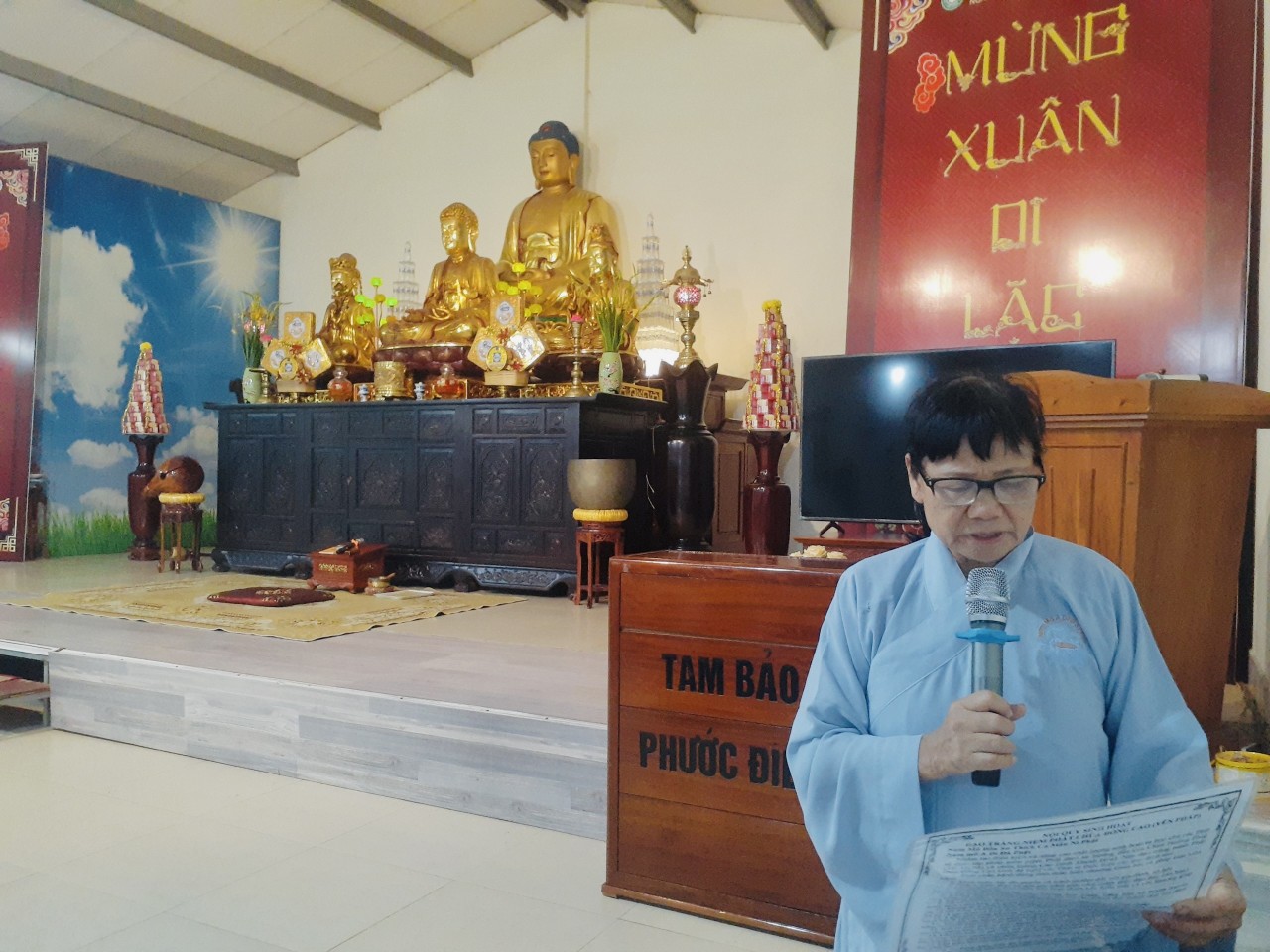 Tiếp đó, Đại đức trụ trì Thích Tâm Hưng đã quang lâm hướng dẫn đại chúng vào thời khóa sám hối ôn lại Tam Quy và năm nguyên tắc đạo đức cũng như chia sẽ những lời pháp nhũ từ cuộc sống hằng ngày nhằm giúp đại chúng vững tâm Bồ Đề phát nguyện tu trì cùng nhau xây dựng tịnh độ hiện tiền khi còn duyên ở cõi ta bà này và hết duyên thì được vãng sinh cực lạc.