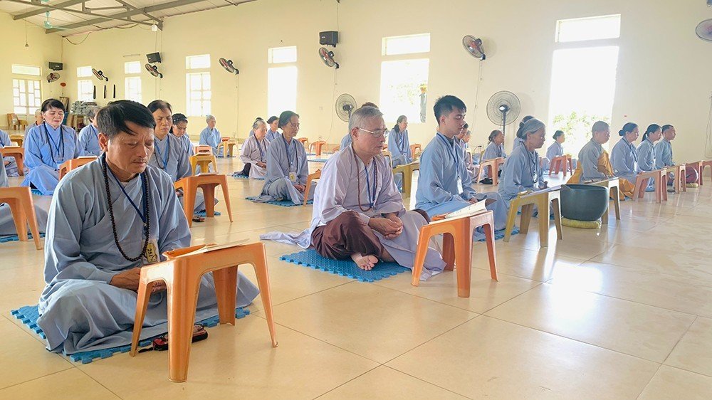 Sau khi đăng ký nhập khoá, mở đầu khóa tu Đại đức Thích Tâm Hưng - Trưởng BTC đã cho đảnh lễ Tam Bảo trì tụng bài Kinh Chuyển Pháp Luân và truyền thọ Bát Quan Trai Giới đến đại.