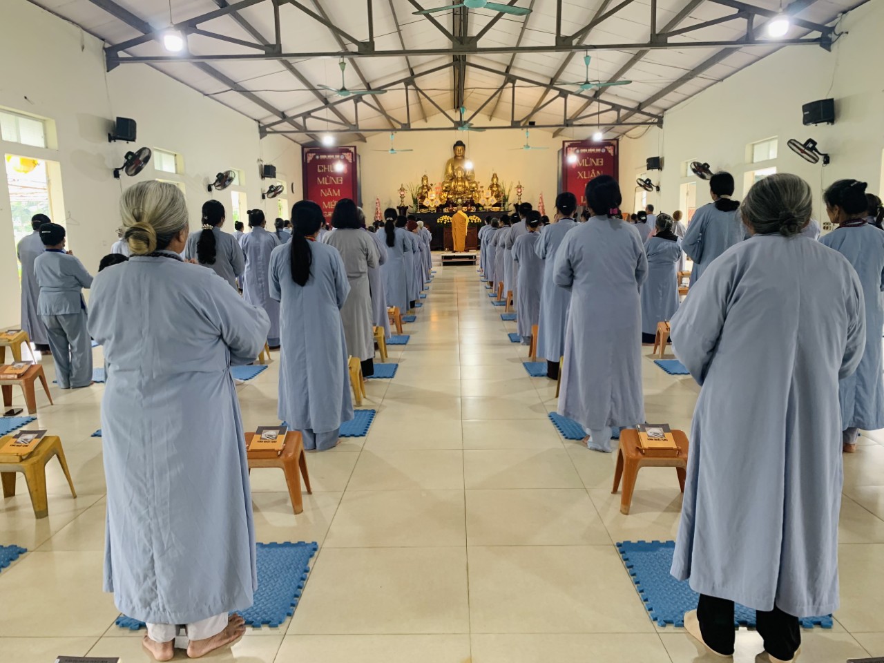 Đặc biệt, trong khoá tu này trước khi dùng cơm trưa trong chánh niệm, đại chúng đã được gieo duyên cúng dường trai Tăng lên chư Tôn đức Tăng Ni hiện tiền do Phật tử Liên Hồng hướng dẫn và đại chúng dùng cơm dưới sự hướng dẫn của chư Tăng.
