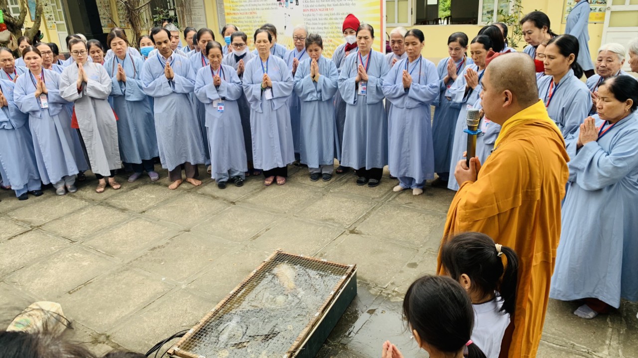 PSO - Ngày 14/5/2023 (nhằm ngày 25/3 Quý Mão), với tinh thần ham tu ham học dù thời tiết địa phương đang ảnh hưởng không khí lạnh nhưng quý Phật tử xa gần vẫn đã trở về chùa Đống Cao (Yên Khoái, Nga Yên, Nga Sơn, Thanh Hóa) để tiếp tục tham dự khóa tu niệm Phật một ngày tháng 3 Âm lịch.