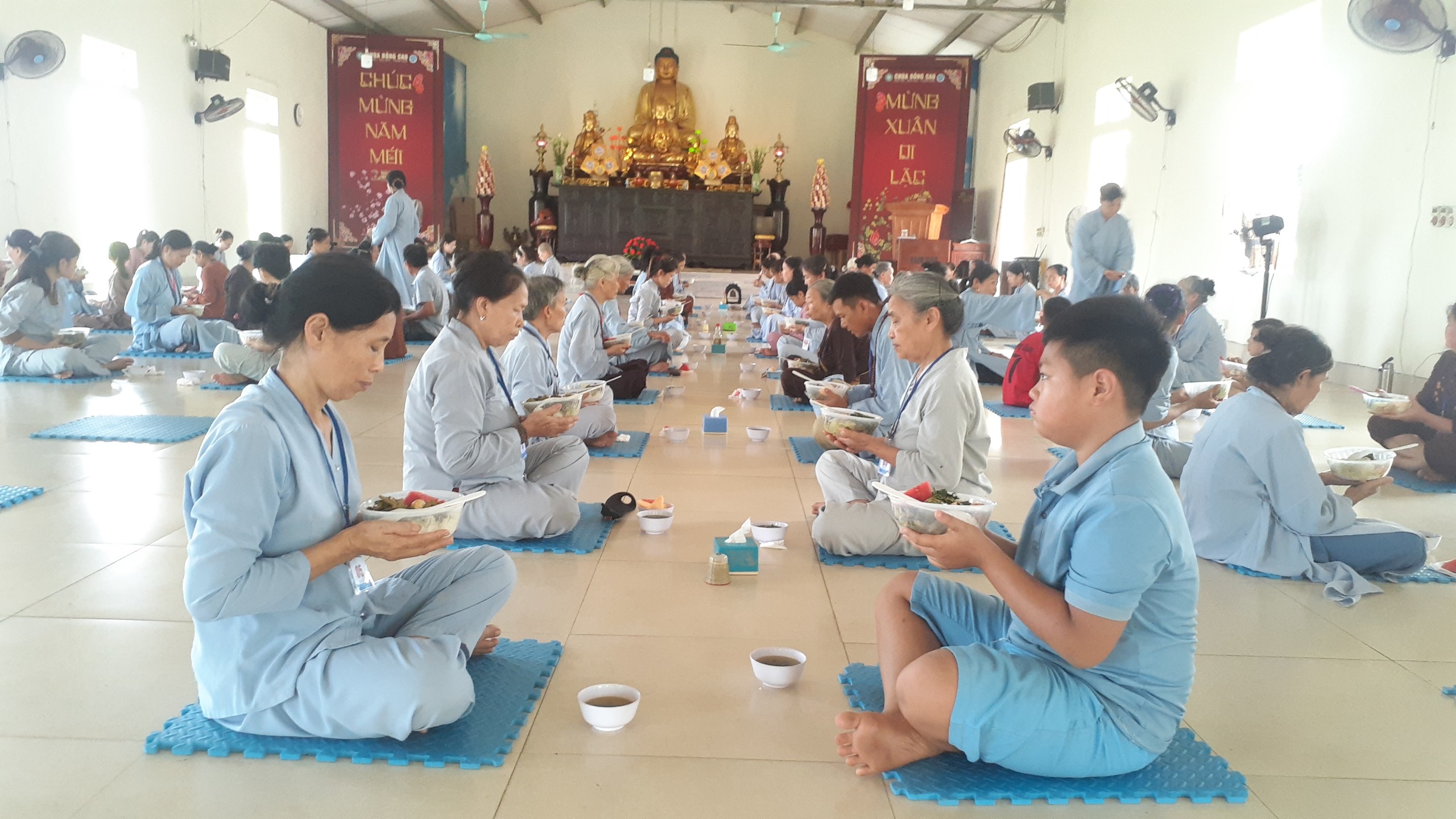 Khóa tu kết thúc trong niềm hỷ lạc của mọi người. Được biết, trước khi dùng cơm trưa trong chánh niệm tại nhà Tổ đại chúng đã được gieo duyên cúng dường trai Tăng lên chư Tôn đức hiện tiền do Phật tử Liên Hồng hướng dẫn và đại chúng dung cơm sưới sự hướng dẫn của Phật tử Liên Hà.